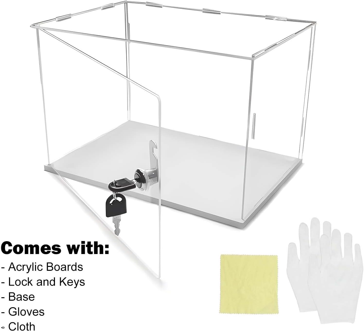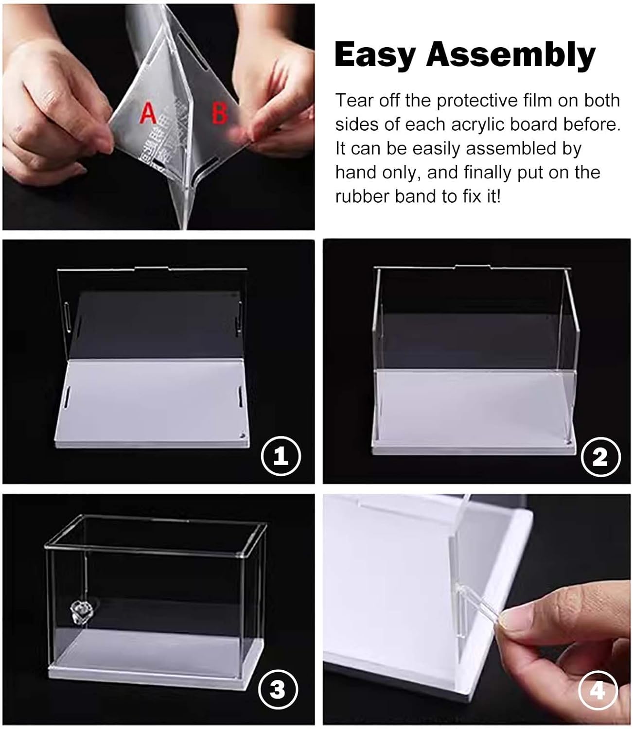 【Scatola espositiva in acrilico trasparente】 Realizzata in acrilico di alta qualità, la copertura antipolvere offre una visione chiara a 360°. La vetrina in acrilico è più leggera e più sicura del vetro. Mantenere la raccolta priva di polvere, ridurre la luce solare e i raggi ultravioletti e ridurre il rischio di danni al contenuto. 【Adatto a vari oggetti da collezione】 La nostra vetrina in acrilico protegge e mette in mostra figurine, modelli, case in miniatura, premi, bambole, giocattoli, automobili, gioielli, oggetti da collezione, palle da baseball, ricordi di nozze, fiori e altro ancora. Perfetto da esporre in soggiorno, ufficio, negozio al dettaglio, ecc. 【Assemblaggio facile e veloce】 Con il design a scatto, i contenitori trasparenti sono molto facili da montare senza colla. Puoi costruire tu stesso una scatola di plastica in 5 minuti. La scatola trasparente è dotata di serratura di sicurezza e chiave per tenere al sicuro la tua amata collezione. 【Pellicola protettiva antigraffio】La pellicola a doppio strato sui pannelli acrilici previene i graffi durante il trasporto. Tieni presente che è necessario rimuovere la pellicola protettiva prima dell'installazione. 【Come scegliere la taglia】 Misura prima la lunghezza, la larghezza e l'altezza della tua collezione e aggiungi almeno 3-5 cm (1-2 pollici) a questa cifra quando scegli una vetrina