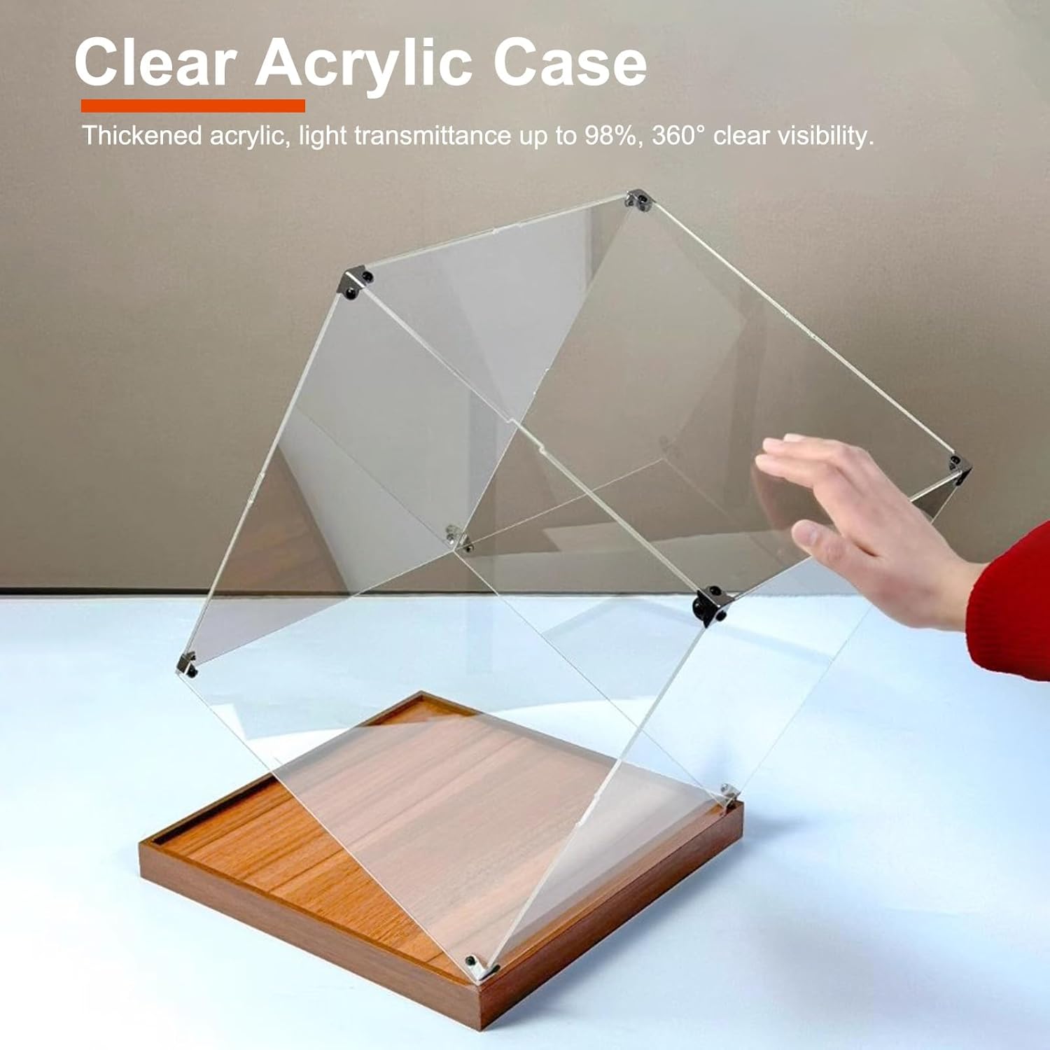 Vetrina per Collezione 10 20 30 40 50 60 Cm Scatola Espositiva per Bambole, Custodia in Acrilico Antipolvere da Collezione con Base in Legno, Contenitori Trasparenti Impilabili, Supporto per Organizzare