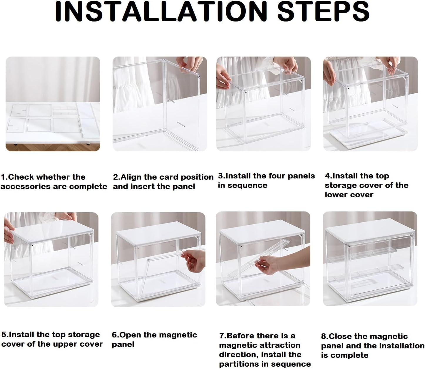 Materiali di alta qualità: la vetrina delle figurine è realizzata in PP di alta qualità, durevole, facile da pulire, alta trasparenza, può identificare rapidamente gli oggetti rubati, di facile accesso, la dimensione totale di 10,6 * 7,08 * 8,27 pollici / 27 * 18 * 21 cm Facile da installare: la vetrina in acrilico è facile da installare, i passaggi di installazione possono essere installati attraverso la descrizione del prodotto, senza bisogno di colla e strumenti, pochi minuti per installare l'intera vetrina impermeabile Antipolvere: La vetrina è una struttura completamente chiusa, che può essere antipolvere e impermeabile in tutte le direzioni per garantire che gli oggetti raccolti all'interno rimangano puliti e ordinati. La vetrina può ridurre la luce solare e i raggi UV, rallentando l'invecchiamento della plastica. Design impilabile rimovibile: all'interno della vetrina trasparente della collezione, sono presenti due strati di squame rimovibili per regolare lo spazio di archiviazione in base alle dimensioni degli articoli da conservare. La porta della vetrina è magnetica, non preoccuparti se gli oggetti all'interno cadono, la vetrina può essere impilata automaticamente tramite pressione per risparmiare spazio di archiviazione. Scatola da esposizione multifunzionale: la vetrina dell'omino non solo può contenere bambole, oggetti da collezione, giocattoli, scarpe, borse, ma può anche essere utilizzata come scatola per cosmetici per conservare prodotti per la cura della pelle, profumi, gioielli, ecc. Se riscontri problemi durante l'uso, non esitare a contattarci!