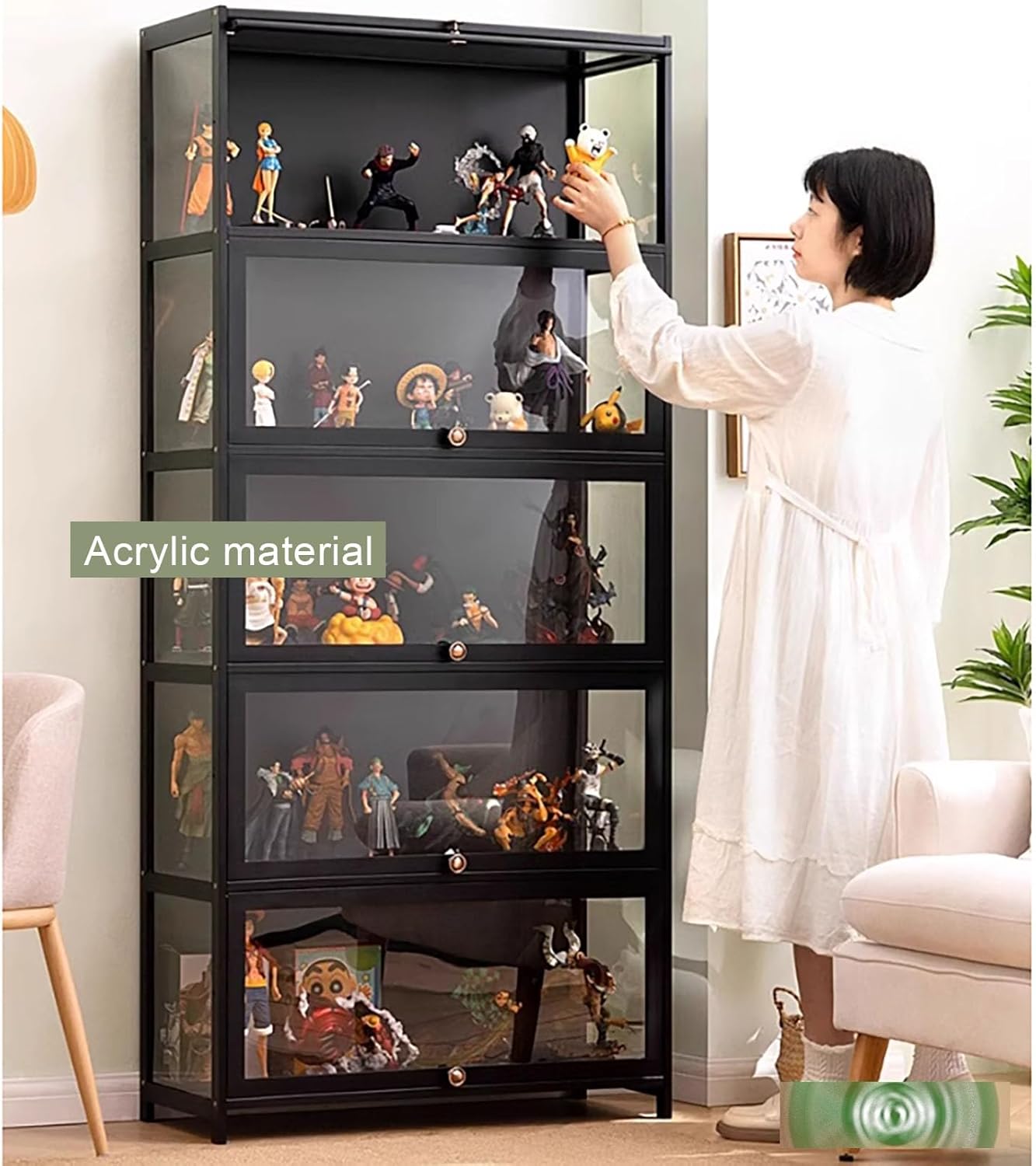 Materiale di alta qualità - La vetrina è realizzata con pannello acrilico e solide tavole di bambù, che garantiscono la stabilità della vetrina e garantiscono un servizio duraturo. Il materiale di bambù non sarà influenzato dalle giornate umide o piovose. Stoccaggio di grande capacità: questo armadietto non occupa spazio ma ha un ampio spazio di archiviazione, adatto per esporre figurine, libri, foto, opere d'arte, decorazioni, ecc. Design della porta dell'armadio: la porta a ribalta è facile da aprire e chiudere, il design a pressione e al passaggio del mouse non occuperà il nostro spazio quando è aperto. Il pannello della porta ha una funzione di aspirazione magnetica che lo rende più ermetico e antipolvere. Presentazione chiara: l'aspetto trasparente della vetrina presenta una presentazione più bella e più chiara dei tuoi articoli, mentre il pannello trasparente si fonde perfettamente con l'ambiente circostante aumentandone il fascino estetico. Ampiamente usato: può essere utilizzato come vetrina nel soggiorno, come armadietto per il vino in cucina, come libreria in ufficio o come espositore fatto a mano nella stanza delle collezioni, come decorazione d'interni moderna nel tuo soggiorno. Mostra i tuoi oggetti da collezione nella nostra vetrina trasparente.