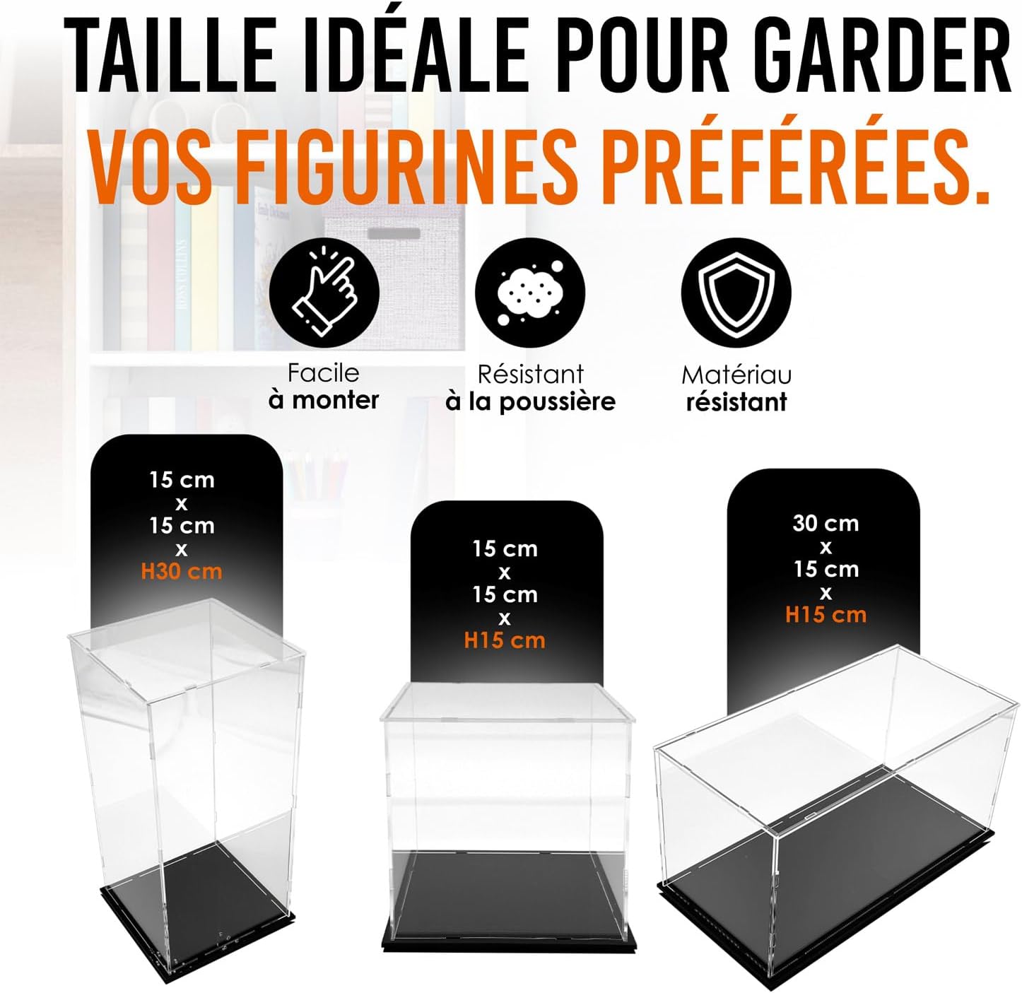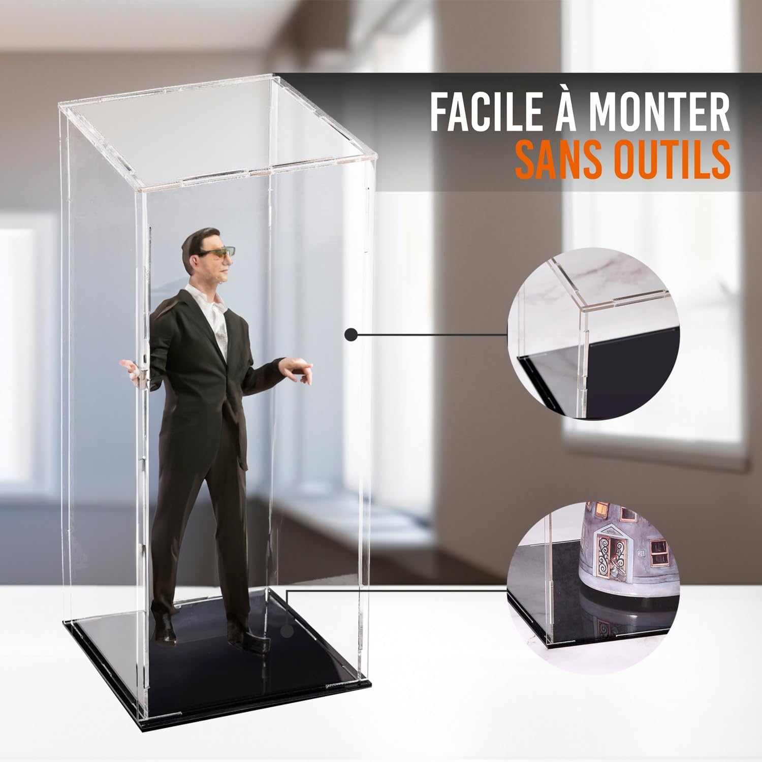 MATERIALE: Le nostre vetrine sono realizzate in metacrilato trasparente spessore 2 mm e metacrilato nero lucido sulla base per evidenziare gli oggetti all'interno della vetrina. FACILE MONTAGGIO: questa vetrina per collezione di figurine può essere assemblata in un istante, basta semplicemente agganciare le pareti dell'urna alla base e posizionare il coperchio della scatola. UTILIZZO: La vetrina espositiva è ideale per riporre oggetti di piccole e medie dimensioni. È leggero e facile da trasportare proteggendo dalla polvere. MANUTENZIONE: L'acrilico contiene una pellicola protettiva su entrambi i lati per evitare attriti e graffi, ricordarsi di rimuoverla prima di montare la vetrina. Una volta installato può essere pulito normalmente, senza trattamenti particolari. GOYAPRINT: Questo prodotto è realizzato con materiali provenienti dall'UE. Se avete domande, non esitate a contattarci, saremo felici di aiutarvi.