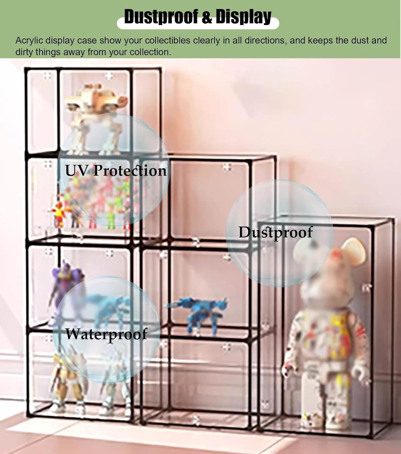 【Antipolvere e display】 Le nostre scatole trasparenti mostrano chiaramente i tuoi oggetti da collezione da tutte le direzioni. Allo stesso tempo, fornisce anche una protezione completa contro polvere e raggi ultravioletti per prevenire danni agli oggetti, è il modo migliore per proteggere le tue collezioni. 【Custodia in Acrilico Trasparente】 Questo armadietto trasparente è realizzato in acrilico spesso di alta qualità, con elevata trasmittanza, non facilmente deformabile, facile da pulire, bordi lisci e lucidati, la base è in PVC bianco, che lo rende visivamente più accattivante. trofei, cosmetici, statue, sculture, forniture per ufficio, ecc. Può anche essere un fantastico regalo di Natale, vacanze, compleanno per i tuoi amici.,Facile da montare: design con assemblaggio a scatto, rimuovere la pellicola protettiva dalla custodia acrilica prima dell'installazione, assemblato dal fondo senza attrezzi. Nota: una volta completata l'installazione, se il pannello inferiore è rinforzato con colla, la scatola sarà più stabile (la colla non è inclusa). NOTA: misurare la lunghezza, la larghezza e l'altezza della collezione prima di ordinare, quindi ordinare in base alla dimensione necessaria