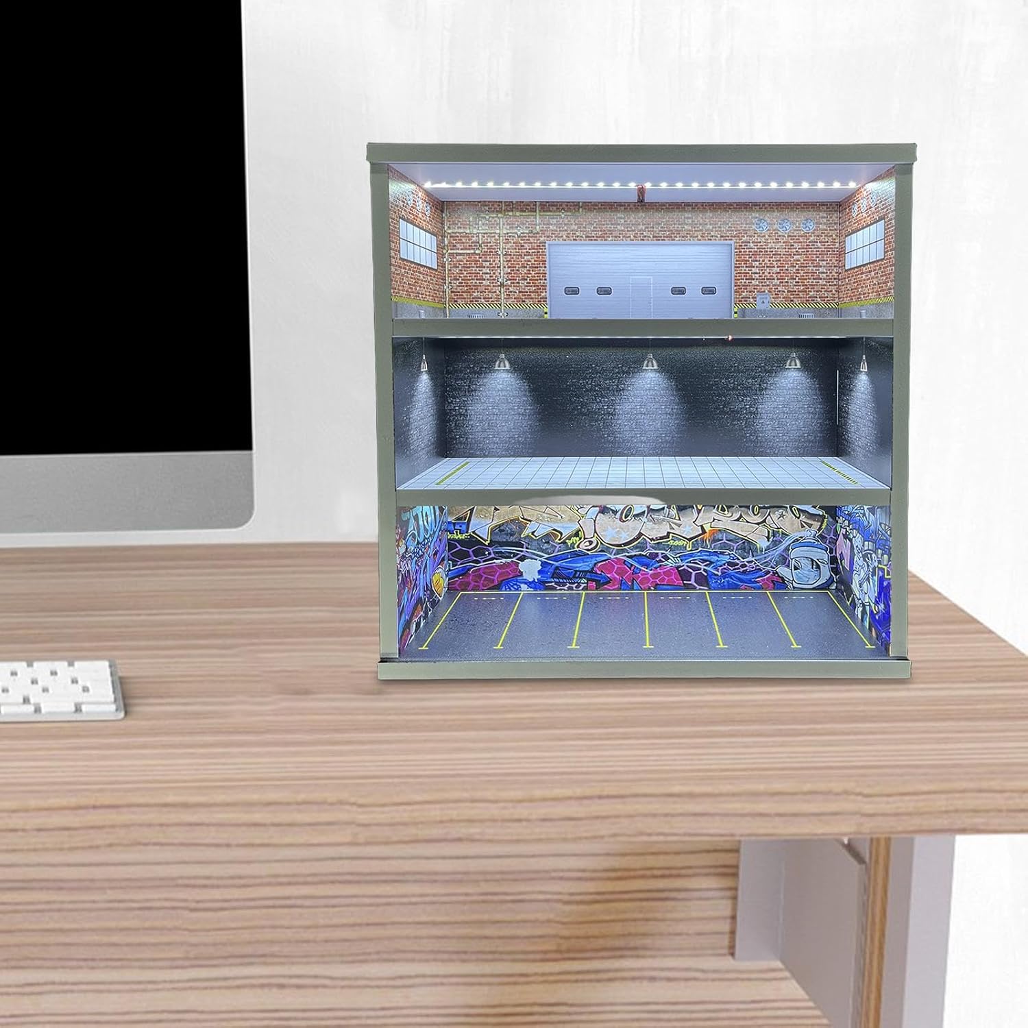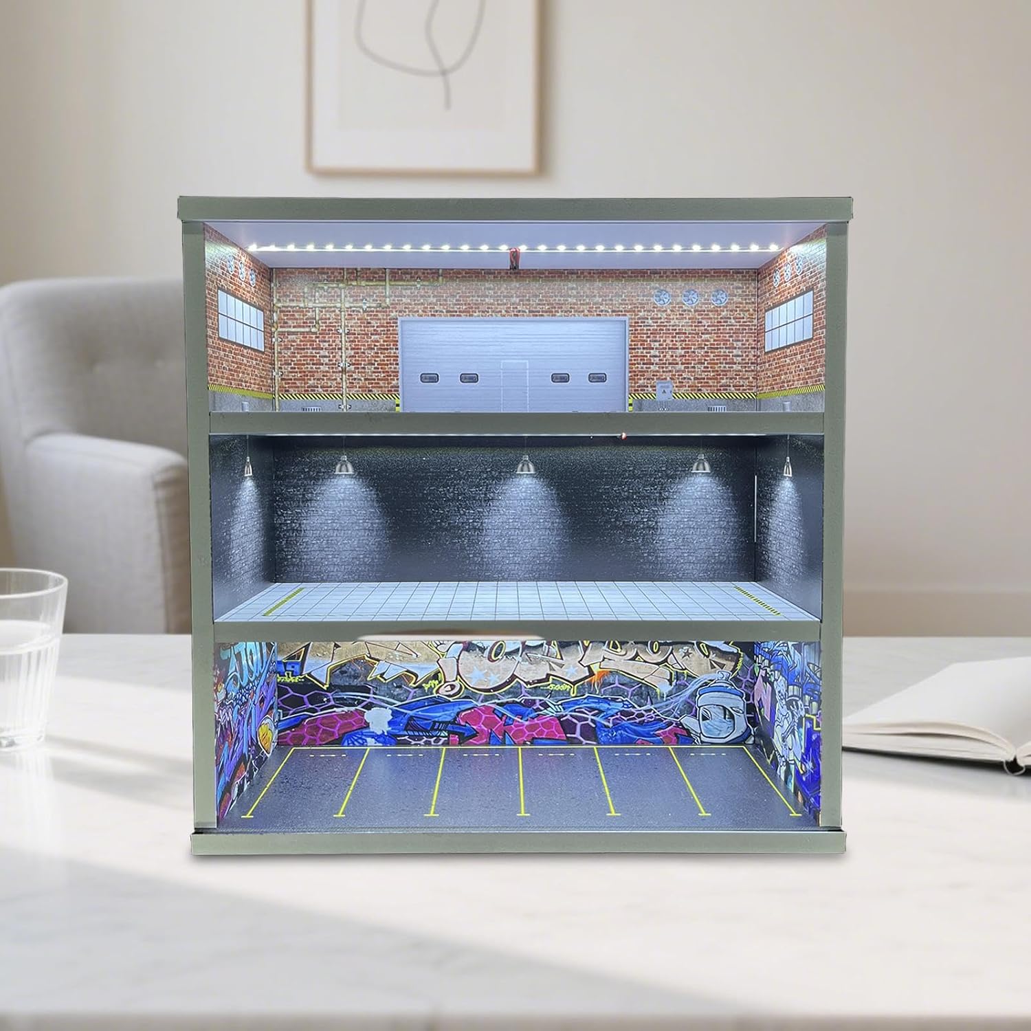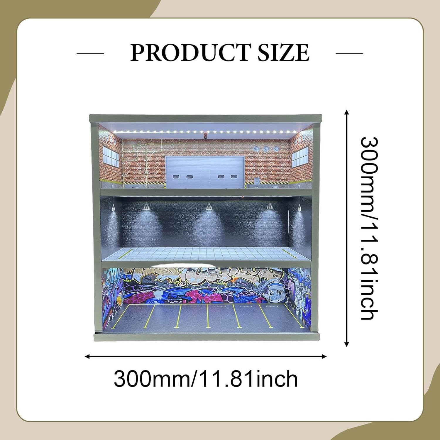 【Decorazione per la casa】: la vetrina per modellini di auto da garage è un grazioso ornamento da scrivania, un micro paesaggio decorativo e un oggetto di scena per foto, adatto per casa, ufficio, negozio, ecc. 【Modello di scena in miniatura】: Diorama realistico di un parcheggio, che offre un'atmosfera speciale per esporre i tuoi oggetti da collezione. Luce integrata, presa USB, accendi l'interruttore di controllo per illuminare 【Materiale di alta qualità】: la scatola espositiva per scene di parcheggio è realizzata in materiale PVC di alta qualità, dotata di copertura in acrilico antipolvere, robusta, non facile da rompere e garantisce un lungo periodo di utilizzo 【Ottimo regalo】: l'organizzatore per scatole portaoggetti per è un'ottima scelta regalo da collezione per appassionati e collezionisti di modellini di auto, ottimo per riporre, esporre, decorare, ecc. Dimensioni circa 30 cm x 11 cm x 30 cm / 11,81 pollici x 4,33 pollici x 11,81 pollici 【Contenitore per 】: la vetrina espositiva per modellini di auto in miniatura a 3 livelli è adatta per riporre ed esporre modelli di auto in 1/64, proteggendo i tuoi modelli da polvere e danni. Facile da montare, adatta agli appassionati del fai da te.