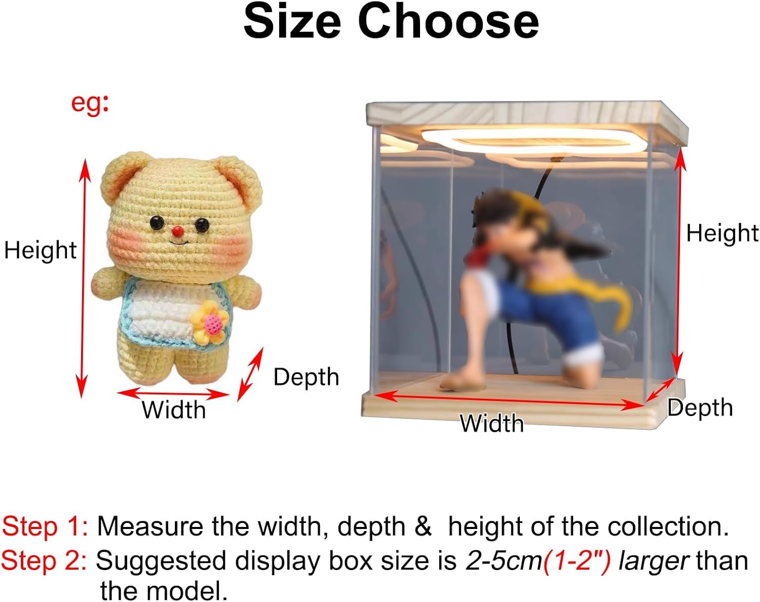 Ottimizza la tua collezione con la nostra versatile vetrina. Progettata per adattarsi a varie dimensioni, questa custodia assicura che i tuoi oggetti siano esposti magnificamente. Si prega di misurare la collezione prima dell'acquisto per confermare la compatibilità. Per qualsiasi richiesta, non esitate a contattarci. Perfetto per i collezionisti che cercano un'elegante soluzione di archiviazione. Facile da montare: le nostre vetrine da collezione sono progettate per un montaggio rapido, consentendo di agganciare i pezzi insieme in pochi minuti. Perfette per mostrare i tuoi oggetti da collezione preferiti, queste custodie migliorano qualsiasi display. Per una maggiore stabilità, sentiti libero di usare la colla (non inclusa) per un montaggio più sicuro. Ideale per collezionisti e appassionati! Mostra i tuoi oggetti con la nostra resistente scatola espositiva, realizzata in acrilico trasparente da 2 mm e una base in legno da 30 mm. Con una trasmissione della luce fino al 98%, questa scatola assicura che i tuoi prodotti brillino. Il suo materiale ispessito fornisce stabilità e longevità, rendendolo ideale per vari ambienti. Perfetto per espositori al dettaglio, decorazioni per la casa e oggetti da collezione. Vetrina trasparente con luce a LED: custodia in acrilico con luce a LED, facile da aprire, mantiene la collezione priva di polvere, blocca la luce solare, la luce LED rende l'intera collezione più calda e illumina l'intera vetrina Materiale spesso: questa scatola è realizzata in acrilico trasparente da 2 mm e base in legno da 30 mm, la trasmissione della luce è fino al 98%, durevole, non si deforma facilmente, lunga durata
