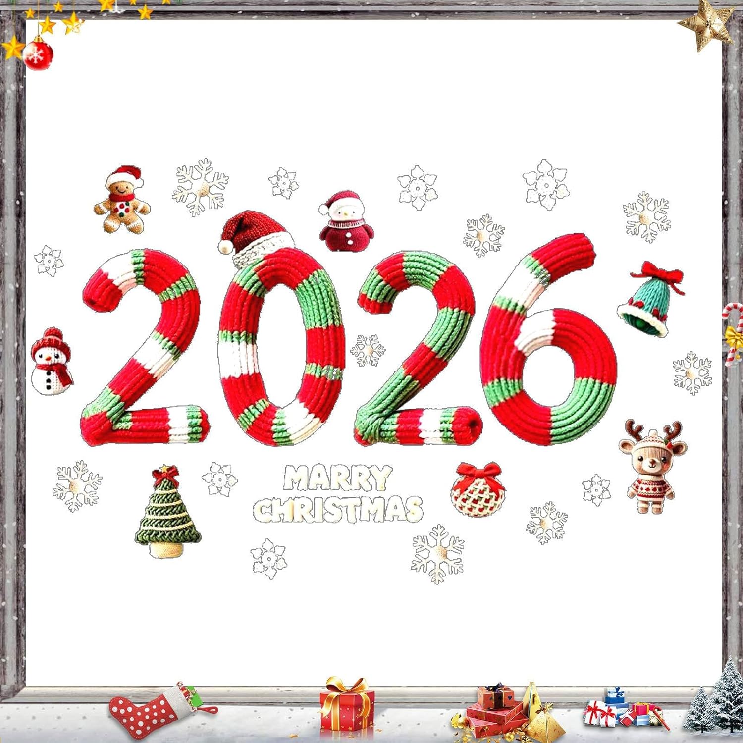 Costruita per durare: realizzata in PVC resistente ai raggi UV e agli agenti atmosferici, questa decorazione per finestra resiste allo sbiadimento e alla deformazione. La sua costruzione solida consente il riutilizzo multistagionale senza alterarne la qualità. Festive Glass Art: affascina i tuoi spazi con immagini di omini di pan di zenzero, pupazzi di neve e renne, presentate in uno stile artistico digitale lanoso per arricchire i temi festivi e offrire un'esperienza coinvolgente per le vacanze 2026. Installazione semplice: senza colla o attrezzi, queste decorazioni natalizie per finestre si attaccano e rimuovono facilmente su qualsiasi superficie liscia. La loro flessibilità consente infiniti riposizionamenti per rinnovare senza lasciare traccia le decorazioni festive di case, ristoranti e vetrine commerciali. Crea Scene: Set di adesivi modulari appositamente studiati per costruire originali decorazioni natalizie. Questo strumento innovativo ti consente di immaginare allestimenti unici e personalizzabili per le tue vetrine festive. Comoda adesione statica: progettati per comodità, questi adesivi utilizzano l'adesione statica per un fissaggio sicuro e rimovibile alle finestre. Decora e regola senza sforzo durante le festività natalizie.