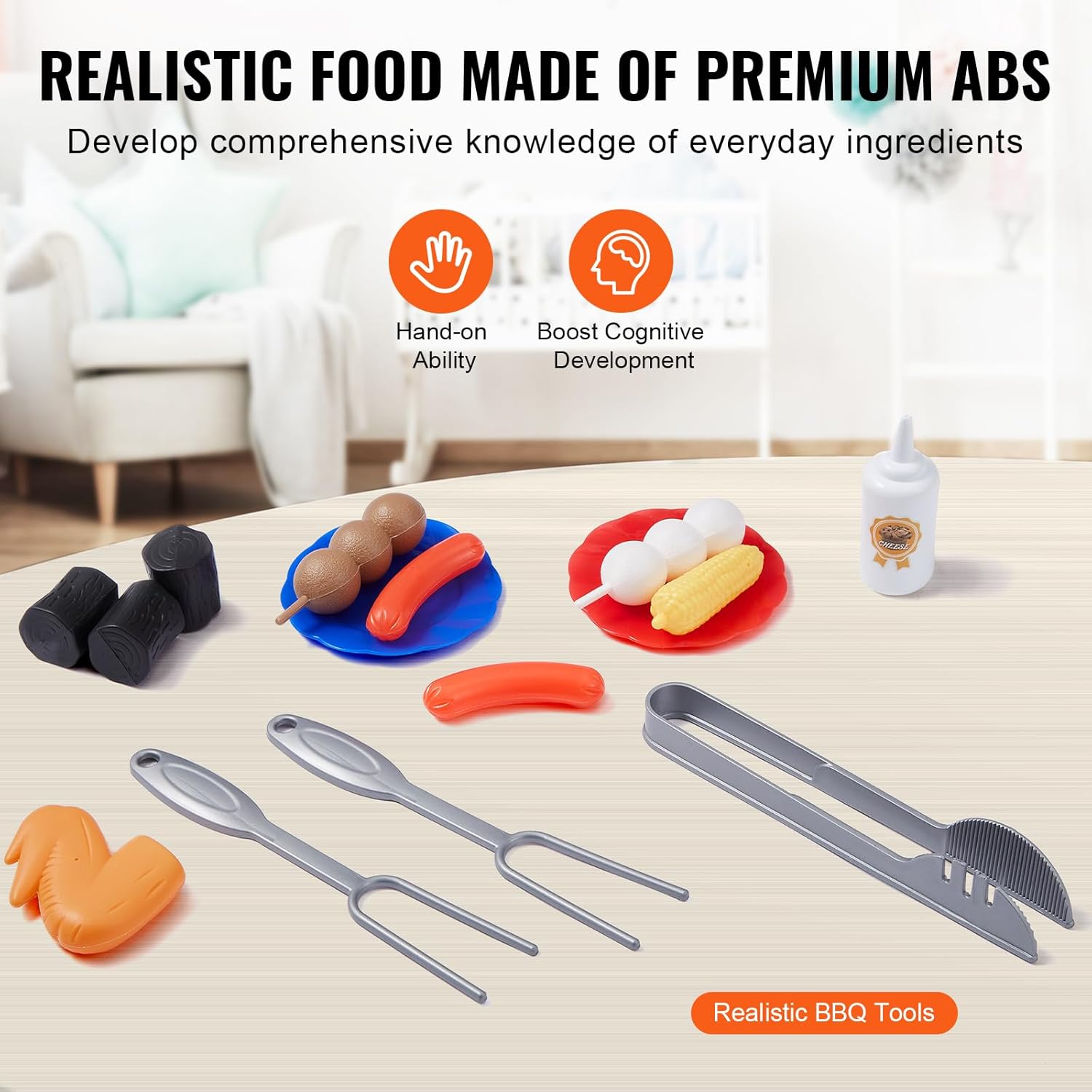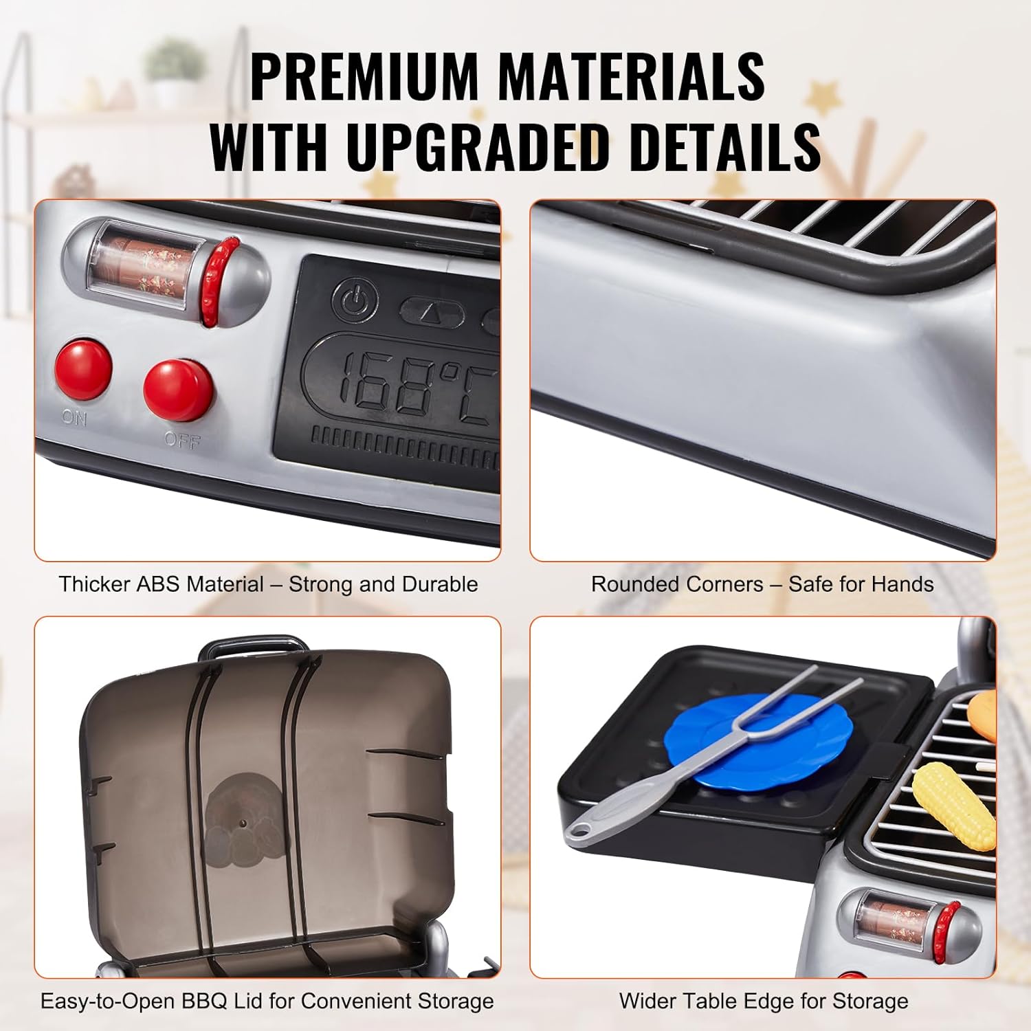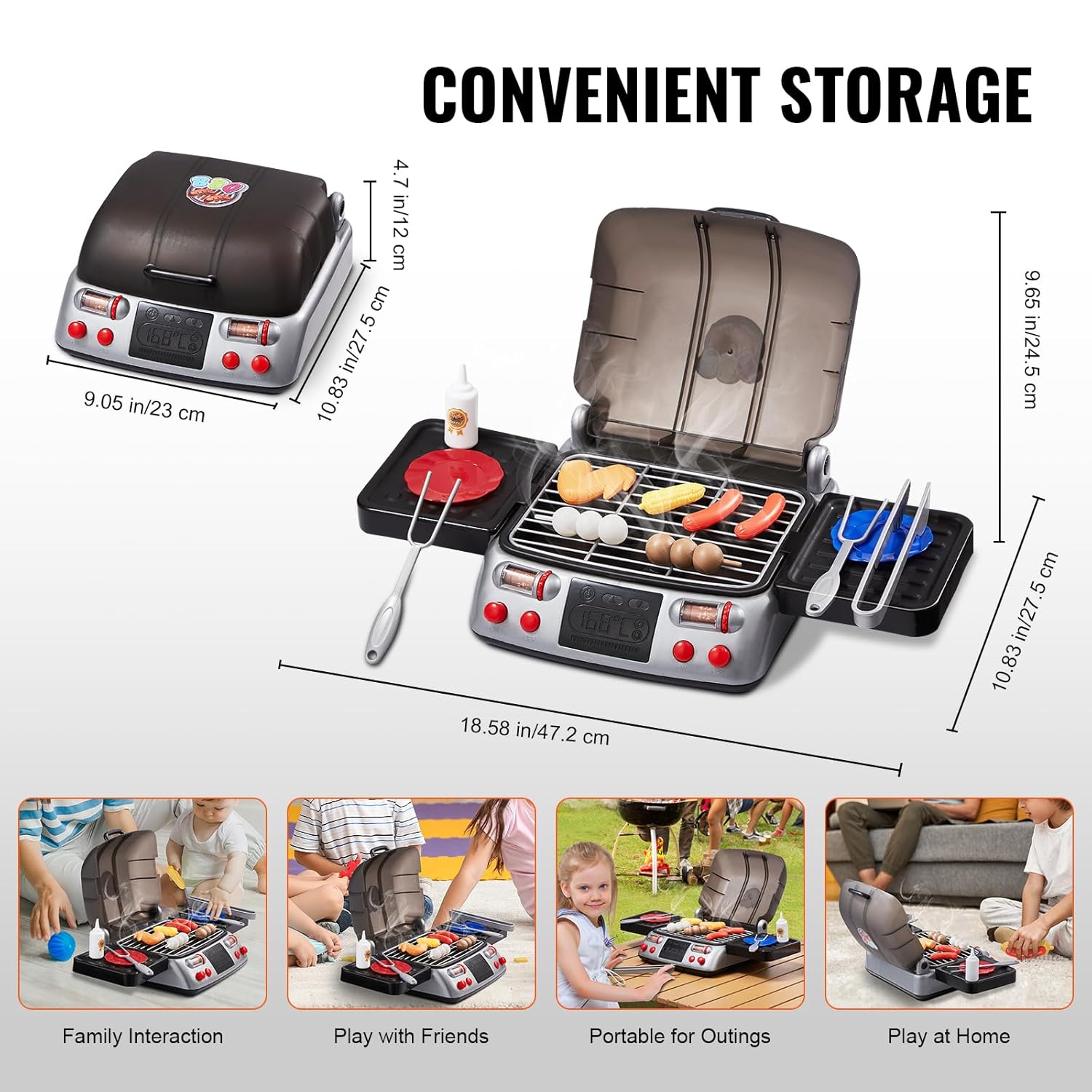 Playset realistico per grigliate: lascia che i tuoi piccoli si divertano a grigliare con il nostro playset per grigliate BBQ! È dotato di luci realistiche, fumo e suoni di cottura. Basta aggiungere un po' d'acqua e utilizzare 3 batterie AA (non incluse), quindi i bambini possono immergersi nel processo di barbecue! Potenzia le capacità cognitive: il nostro set da gioco per barbecue per bambini non è solo divertente, ma anche educativo! Aiuta i bambini a migliorare la coordinazione occhio-mano, a imparare a grigliare e a riconoscere cibi diversi. I bambini possono giocare da soli o con gli amici. Con il set, i bambini possono "cucinare" il loro cibo giocattolo mentre i genitori preparano pasti veri, favorendo il legame genitore-figlio e le capacità sociali. Materiali sicuri e durevoli: realizzato in plastica ABS di alta qualità, il nostro set da gioco per grigliate per bambini è liscio, senza sbavature, privo di BPA e approvato tramite test di sicurezza. Il fumo dei giocattoli per grigliate è generato da un evaporatore ad acqua, che non è caldo ed è completamente sicuro per i bambini. È un fantastico regalo di compleanno per bambini dai 3 ai 8 anni ed è perfetto per giocare all'aperto. Set di accessori completo: questo realistico set da gioco per grigliate per bambini piccoli include tutto ciò di cui i bambini hanno bisogno per ore di gioco fantasioso. Include 2 polpette, 1 pannocchia, 2 salsicce, 1 ala di pollo, 1 pinza, 2 forchette, 3 pezzi di carbone, 2 piatti, 1 formaggio e 1 griglia per barbecue. Facile da montare e riporre: montare questo set di griglia da gioco è un gioco da ragazzi e tutti i pezzi si inseriscono perfettamente all'interno della griglia, quindi non c'è bisogno di ulteriore spazio di archiviazione. Perfetto per giochi di cucina finta al chiuso e all'aperto, consente ai bambini di divertirsi con il barbecue ovunque vadano.