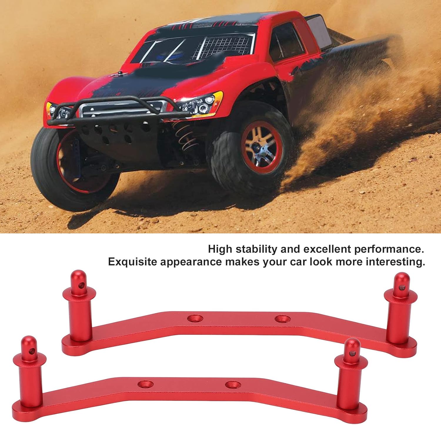 Materiale di produzione: realizzato in materiale in lega di alluminio di alta qualità, in modo che abbia 'elevata stabilità e prestazioni eccellenti. Adatto per auto slash 4x4 1/10 RC. Pregevole fattura e facile da usare: si adatta perfettamente alla tua auto con telecomando, può essere fissato saldamente alla scocca dell'auto, pregevole fattura e facile da usare. Aspetto squisito e altezza regolabile: l'aspetto raffinato rende la tua auto più interessante e l'altezza è regolabile. Fresco e pratico: leggero, facile da installare e utilizzare, non è possibile utilizzare passaggi complessi, più delicato, molto bello e pratico. Design ragionevole: design ragionevole, facile installazione e smontaggio, possono sostituire direttamente le parti vecchie o danneggiate, in modo da ottenere una maggiore resistenza.