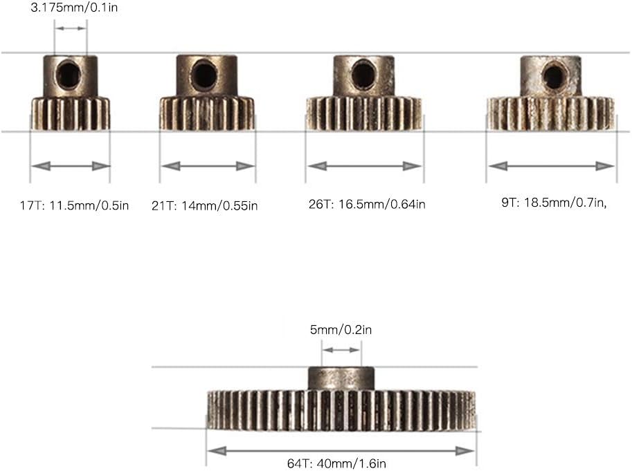 La struttura in metallo resistente consente prestazioni durevoli. Dopo il trattamento antiruggine sulla superficie, non facile da indossare. Adatto per set di ingranaggi per HSP e per auto RedCat 1/10 RC. Questo ingranaggio cilindrico in metallo principale differenziale utilizza materiale metallico di alta qualità. Combinazione di ingranaggio principale 64T e ingranaggio motore 17T 21T 26T 29T.