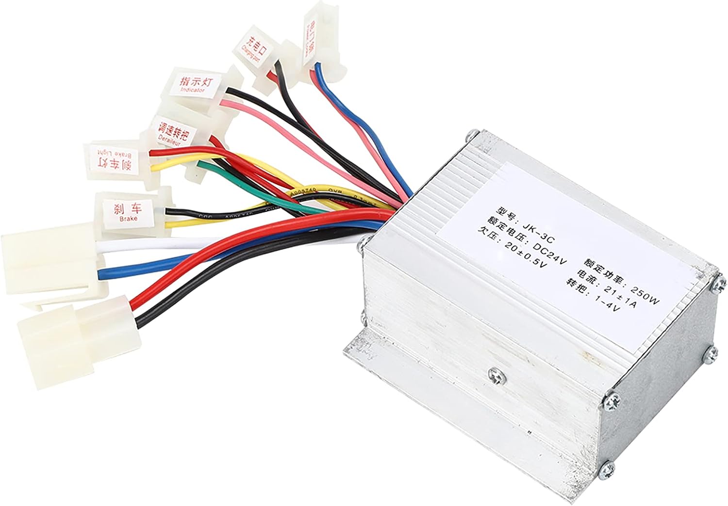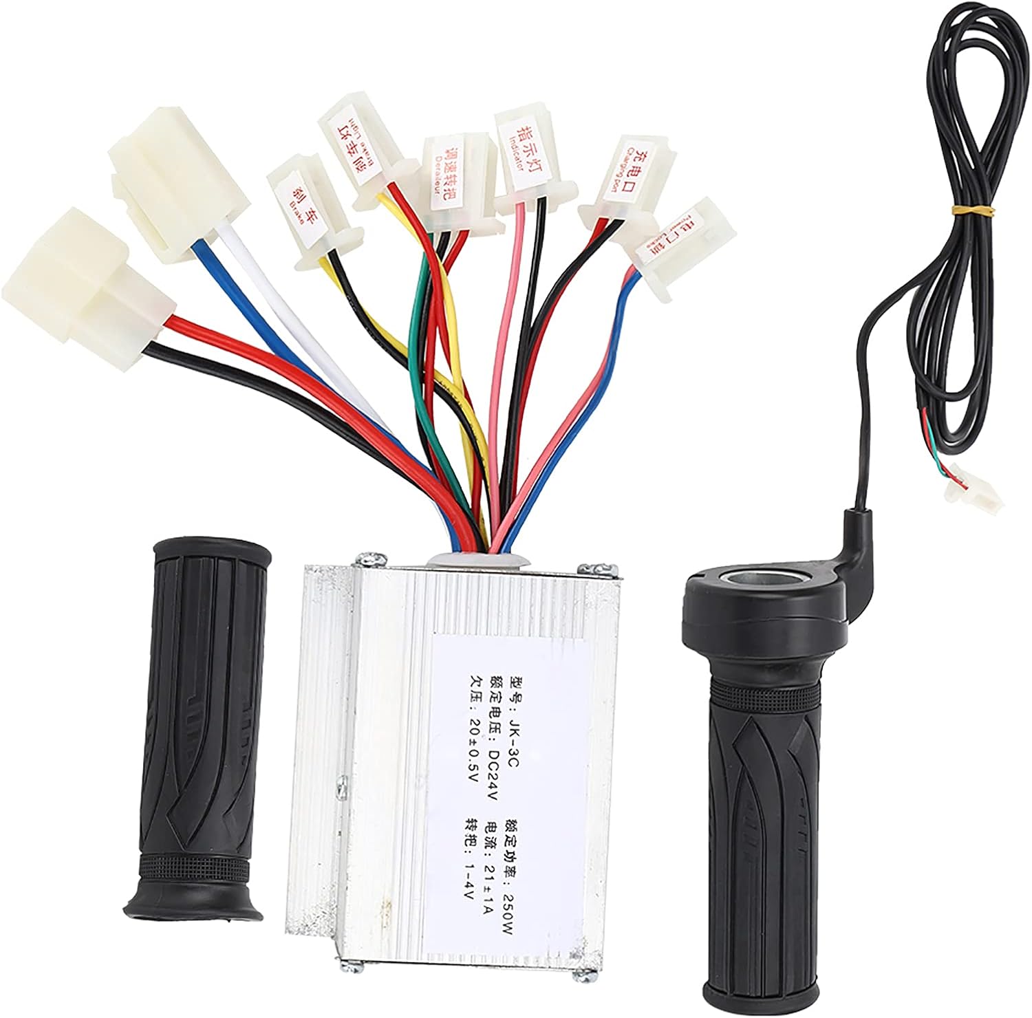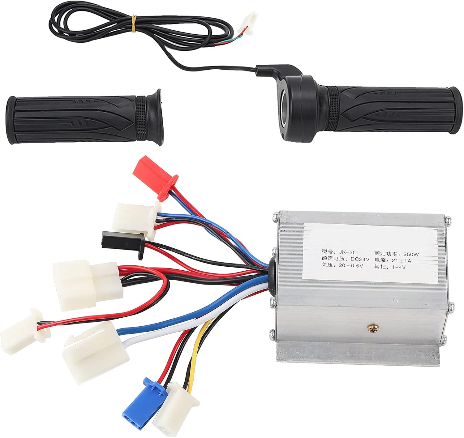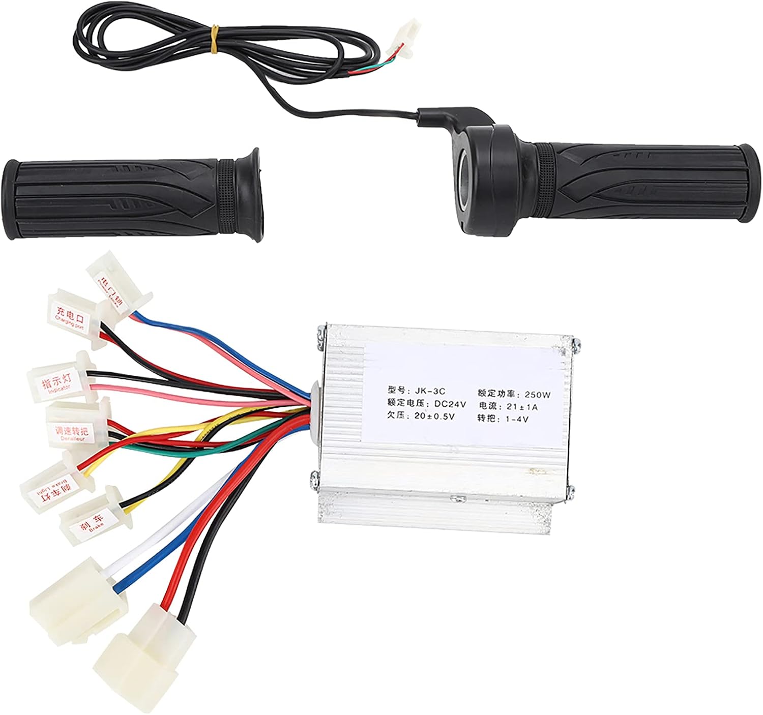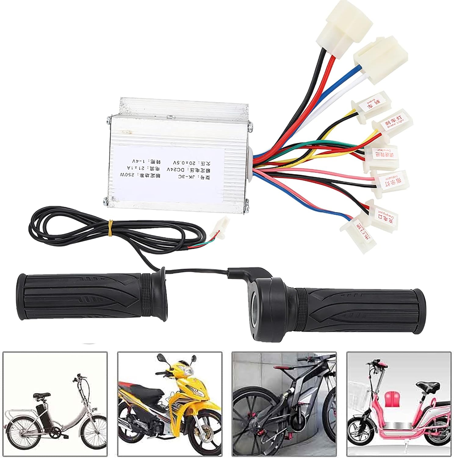 [COSTRUZIONE DUREVOLE] Realizzato in lega di alluminio per condizioni di guida difficili, garantendo durata e resistenza all'usura. [COMPATIBILITÀ VERSATILE] Controller universale per spazzole e set di manopole per acceleratore a pollice, compatibile con una varietà di bici elettriche, installazione senza problemi. [FACILE DA USARE] L'impugnatura lunga dell'acceleratore offre un controllo fluido e reattivo per spostamenti quotidiani confortevoli. [CONTROLLO AD ALTE PRESTAZIONI] Controller avanzato per bici elettrica con spazzole da 24 V 250 W con microcomputer a chip per un controllo ottimale del motore e della batteria. [PROTEZIONE COMPLETA] Dotato di protezione da sottotensione, sovracorrente e stallo per proteggere il motore e la batteria e prevenire danni in condizioni estreme.