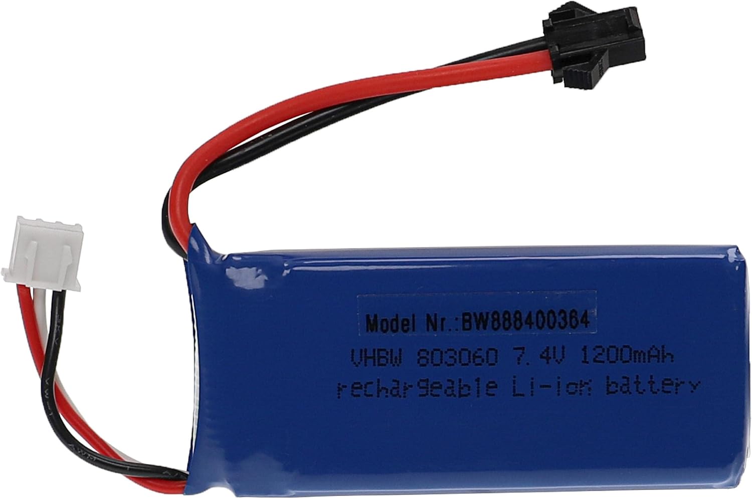 Batteria ricaricabile per modellini RC | Ogni cella della batteria è testata Sostituisce la batteria del proprio dispositivo Batteria ad alta potenza | Capacità: 1200 mAh | Tensione: 7,4 V | Energia: 8,88 Wh | Tipo di cella: Li-Poly | Dimensioni: 70 x 30 x 18 mm Conforme alle norme di legge | Protezione da cortocircuito, surriscaldamento e sovratensione Spedizione: 1x batteria | Accessori di vhbw