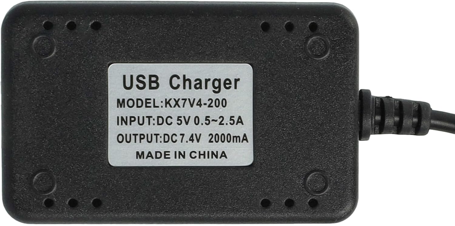 Ricambio per batterie di modelli RC, e. g. veicoli RC, modelli di carri armati RC, barche RC | Cavo di ricarica compatto con spina USB Sostituisce LJ-0740500E Connettore preciso per una connessione sicura alla Sua batteria per modellismo o battery pack | Ricarica più veloce e sicura Input AC: 5 V / 0.5 - 2 A | Output DC: 7.4V, 2A | Frequenza CA di ingresso: 50/60 Hz | Lunghezza cavo: 55 cm | Connessioni: presa USB-A Rispetto delle norme legali | Contenuto della spedizione: 1x caricabatteria | Accessori, cavi e parti di ricambio - di vhbw