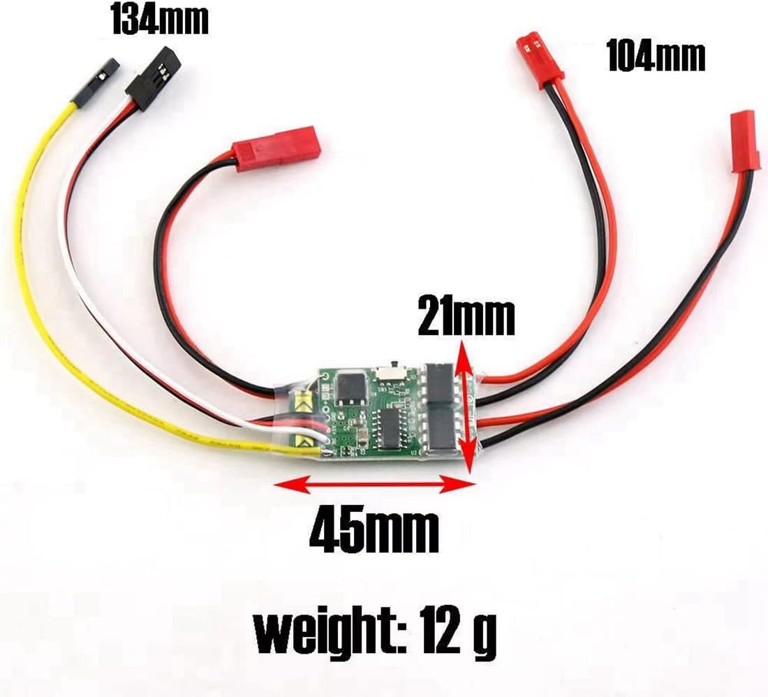 [Regolabile: miscelazione/indipendente [Si prega di notare]: oltre 5 A l'ESC si brucerà, si consigliano motori a spazzola 130, 180. E l'alimentazione dovrebbe essere di 5 V e l'ingresso del segnale è PWM se non funziona bene. [Applicazione]: adatto per modelli di auto 1/35 RC, 4 WD-RC. [Eccellenti prestazioni]: piccole dimensioni con modulo condensatore integrato, con forte corrente di resistenza e buona dissipazione del calore.