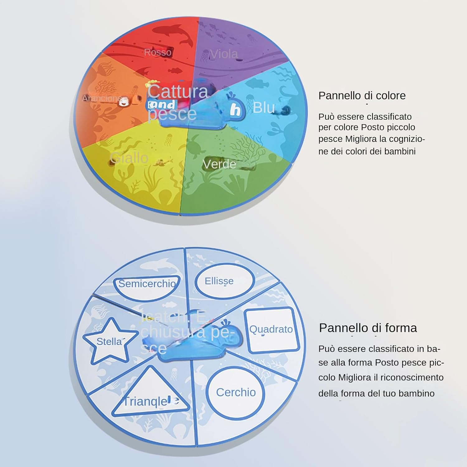 Ideale per l'apprendimento dei colori: il giocattolo da pesca magnetico utilizza l'asta magnetica per raccogliere il pesce, abbinando e riconoscendo colori diversi per sviluppare il riconoscimento del colore senza sforzo Migliora la capacità pratica: favorire lo sviluppo di tuo figlio con questo gioco di pesca magnetica; Migliorare il pensiero logico, promuovere progressivamente le capacità motorie e migliorare progressivamente le abilità pratiche Supporto per il riconoscimento della : i modelli di apprendimento diventano coinvolgenti con le forme carine creature marine, aiutando i bambini a sviluppare facilmente le capacità di riconoscimento delle forme attraverso un gioco divertente Solido e sicuro: realizzato in legno robusto, ogni pesce è di vernice con vernice a base d'acqua, assicurando la durata e l'antifadding, mentre l'aspetto regolare, la prova di bara ruvide, lo rende sicuro e resistente all'usura Promuovi il lavoro di e la strategia: con due canne da pesca, i bambini possono collaborare e strategie insieme nella partita di pesca magnetica per catturare e posizionare il pesce di legno colorato sul tappeto rotolando i dadi