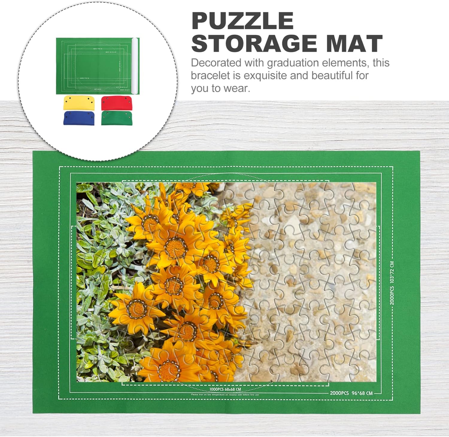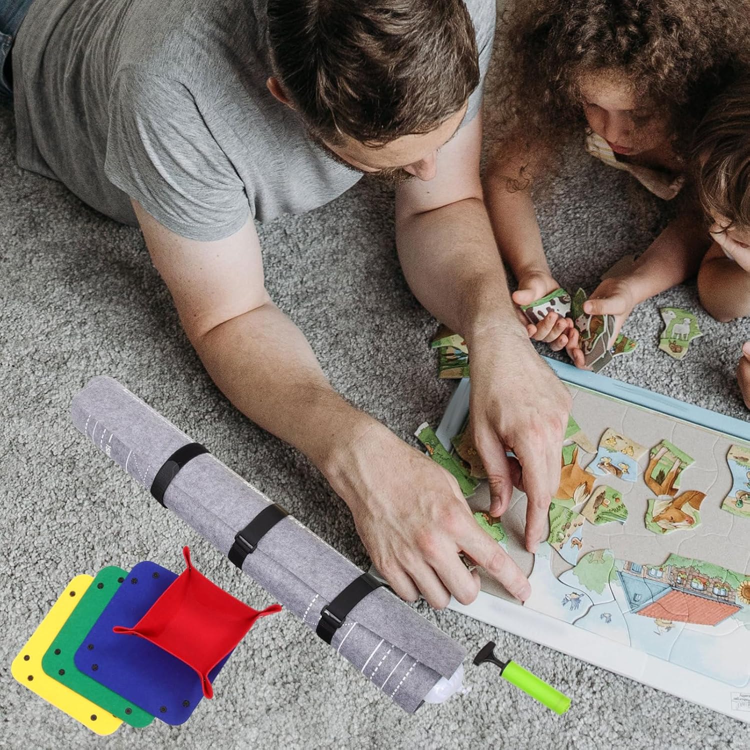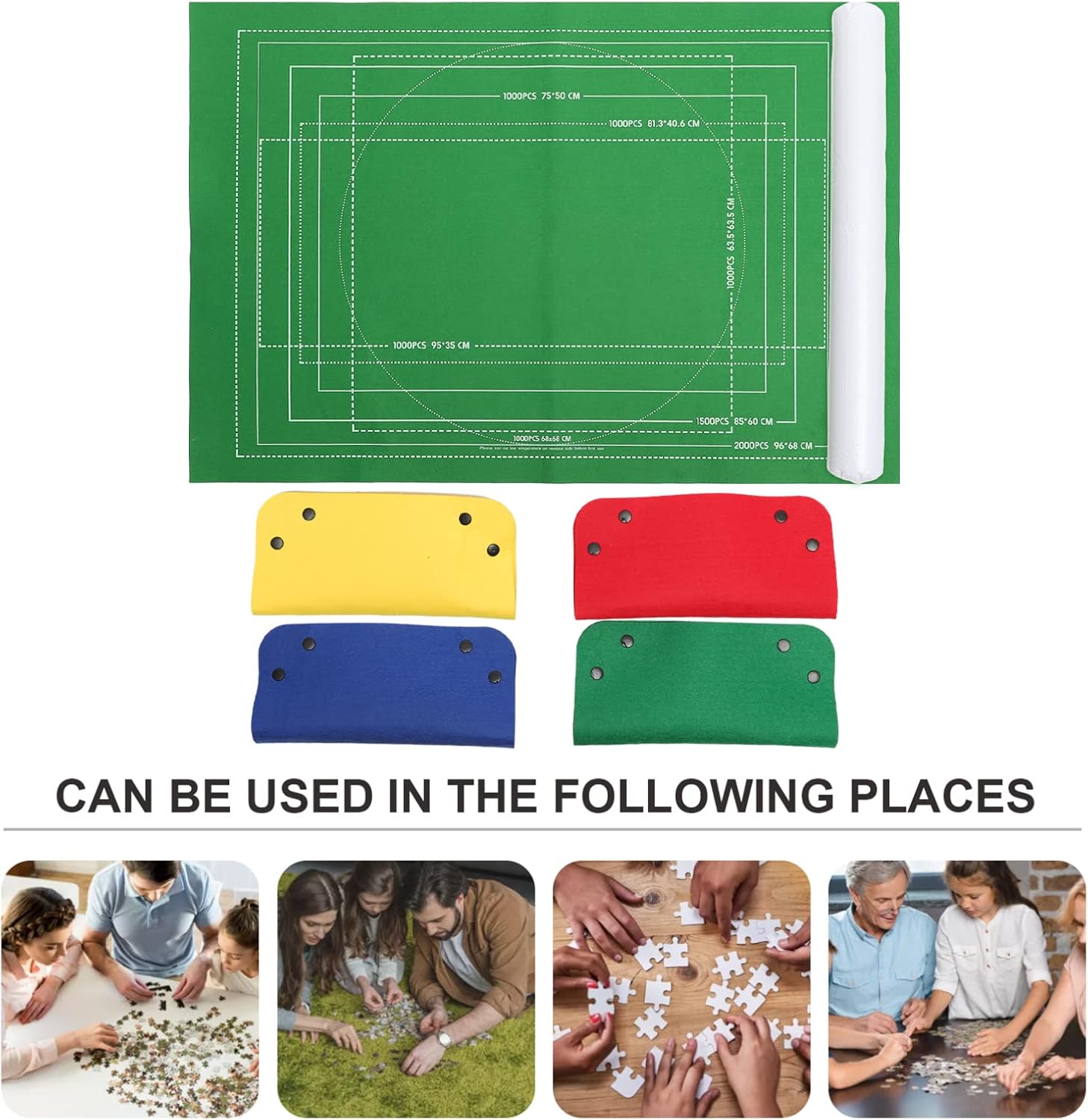 Tappetino puzzle e contenitore – con 3 nastri di fissaggio. È possibile collegare i nastri il più vicino l'uno all'altro o lontani l'uno dall'altro a seconda delle dimensioni del puzzle, vicino o lontano dalle estremità del tubo, come si desidera. Puzzle per – facile da usare: basta stendere il tappetino in feltro su una superficie liscia e e lisciare, quindi potrete iniziare il vostro puzzle game. Tappetino puzzle – aiuta: il colore opaco aiuta a ordinare e contrastare facilmente senza confusione di colore. Tappetino puzzle per adulti – con tubo gonfiabile. Pratico da arrotolare. è possibile controllare la resistenza del tubo in base alla quantità di aria aggiunta ed evitare che le parti si pieghino quando si utilizza un tubo gonfiabile. -- facile da usare: basta stendere il tappetino in feltro su una superficie liscia e e lisciare, quindi è possibile iniziare il vostro gioco di puzzle.