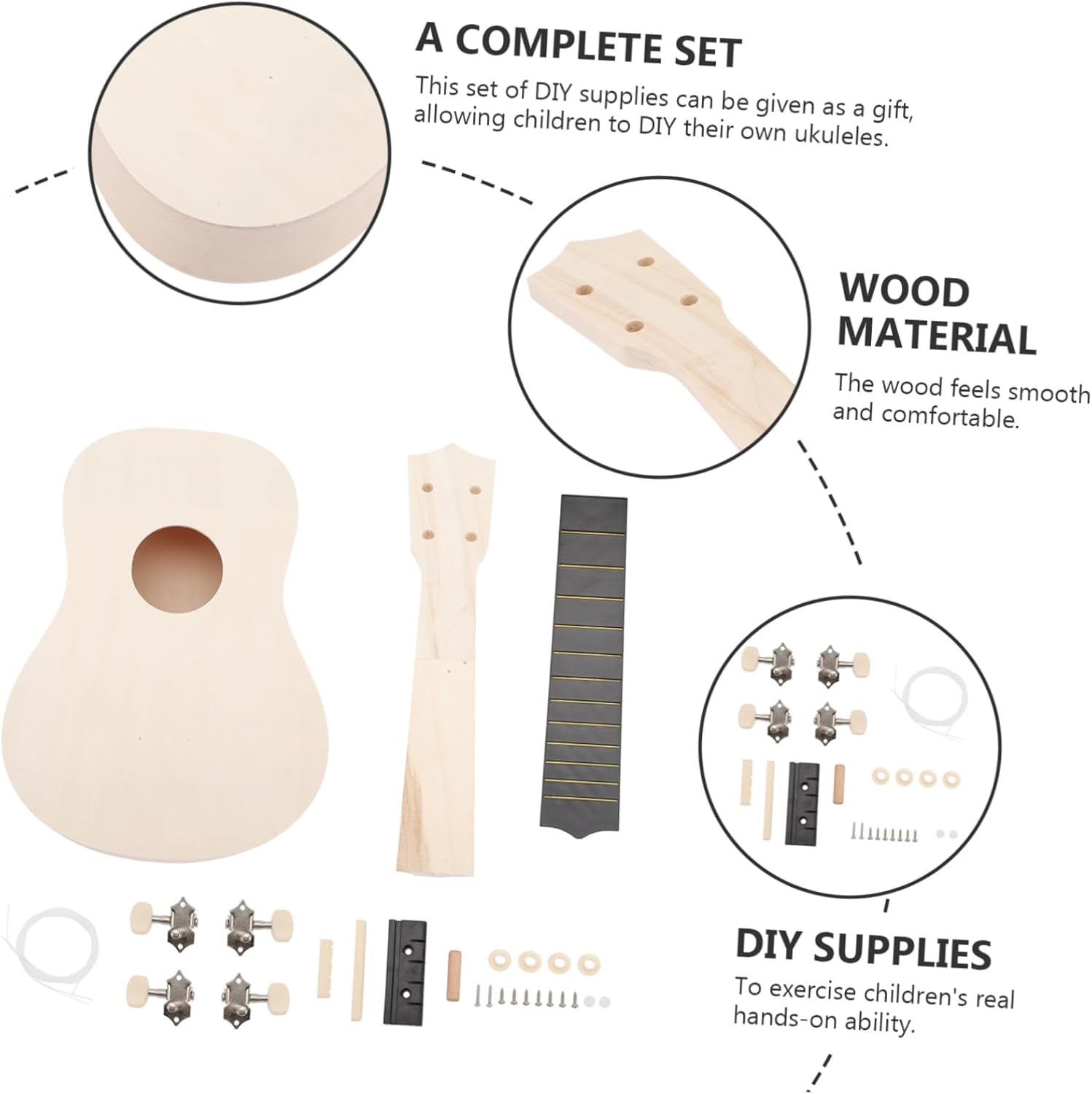 Kit per ukulele fai da te: tutti sono realizzati in materiale e pratico per l'uso, fai da te Set per ukulele fatto a mano: realizzato in legno di alta qualità per una lunga durata e utilizzo. Crea il tuo set per ukulele. Kit per ukulele fai da te, abilità pratiche, kit per chitarra fai da te Materiali per ukulele fai da te: devono essere assemblati per allenare le abilità pratiche dei bambini, materiali per la produzione di ukulele fai da te Kit di montaggio per ukulele, con pregevole fattura, pratico da usare, molto popolare per concerti, scuola, lezioni di musica, kit per ukulele fai da te