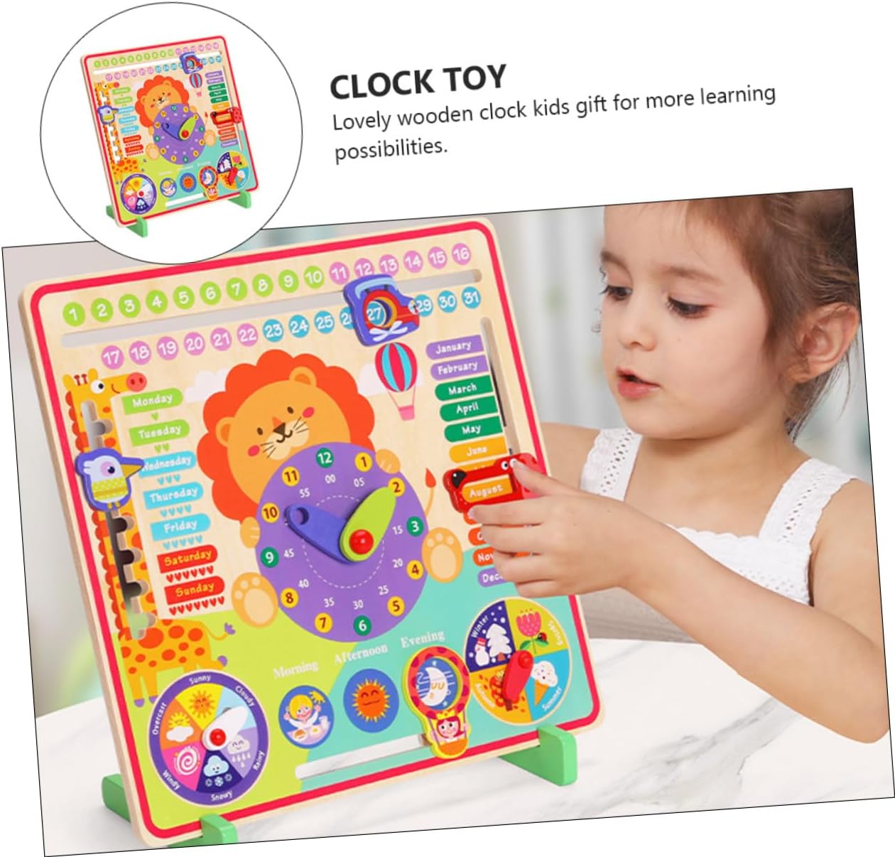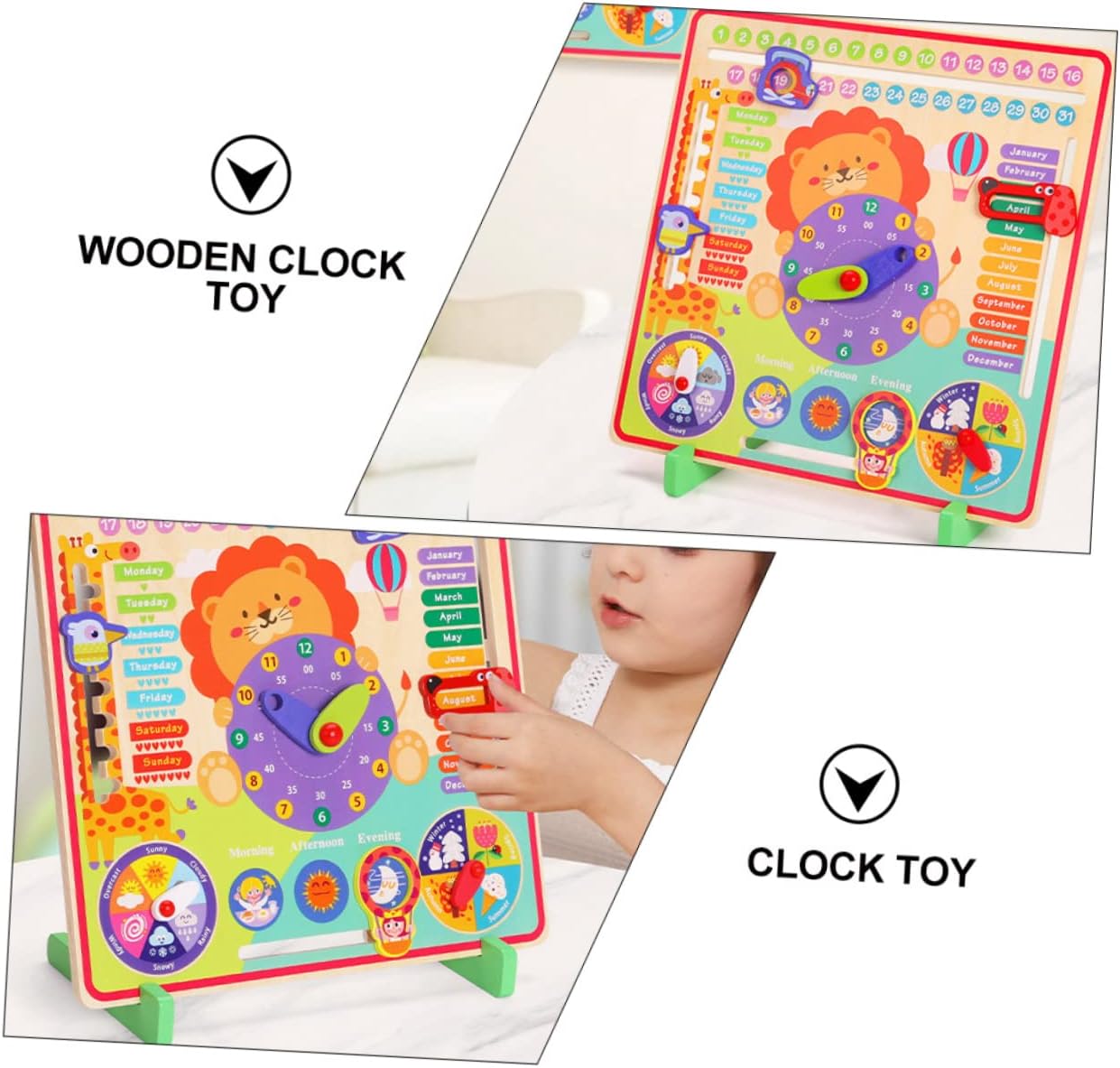 Giocattolo di abbinamento settimanale: l'orologio è realizzato in materiale resistente, per un uso a lungo termine, giocattolo con orologio di ordinamento Orologio da tavolo in legno per : è un fantastico giocattolo educativo per i , i quali possono divertirsi molto giocando e il loro concetto di tempo può essere ben allenato Giocattolo cognitivo per : i blocchi di costruzione del tempo separati e il quadrante dell'orologio, le lancette delle ore e dei minuti girevoli, consentono ai di imparare a il tempo attraverso diversi metodi e scenari e di approfondire la loro cognizione oggettiva dei concetti di tempo, giocattolo educativo per l'apprendimento precoce Giocattolo corrispondente al mese: grazioso orologio in legno, per per maggiori possibilità di apprendimento, un giocattolo con orologio Giocattolo con orologio: realizzato con materiale , è sicuro e non danneggia la salute, giocattoli interattivi