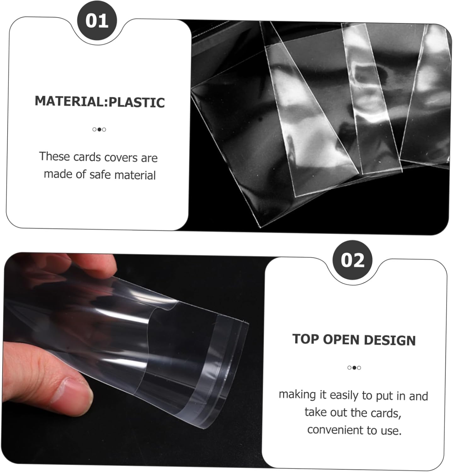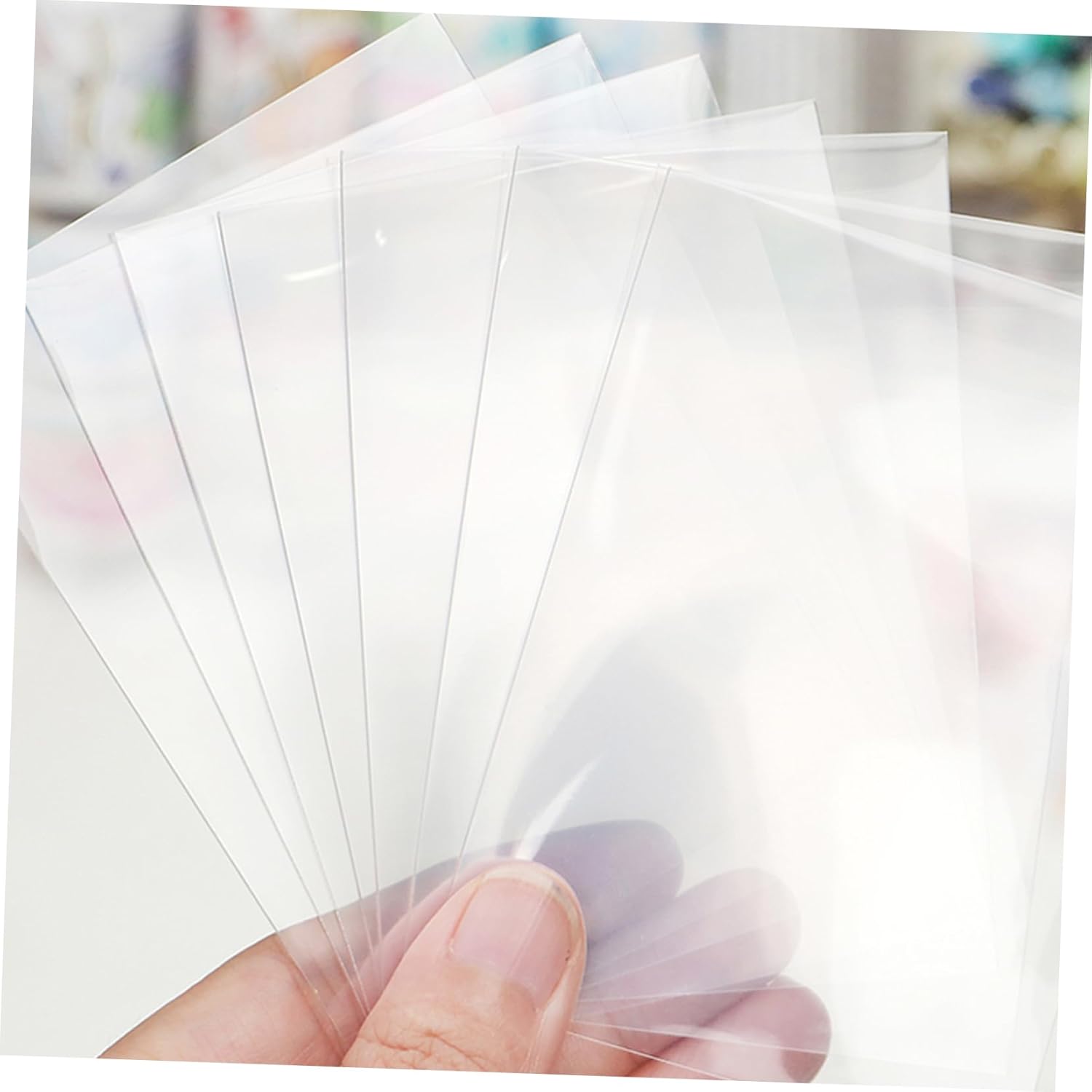 Pellicole per carte da gioco da tavolo: puliscono facilmente con un panno umido, ripongono facilmente, facili da usare, il materiale può far durare a lungo la custodia, buste per carte collezionabili Custodia per carte collezionabili: le buste protettive, le macchie, l'olio, l'acqua contaminano le tue carte e mantengono le tue carte intatte e ordinate, protezioni delle carte Buste per carte da gioco: le dimensioni di queste copertine per carte sono adatte per la maggior delle carte da gioco o altre carte sul mercato, porta carte in stile semplice Protezioni trasparenti per ponte: sensazione di mano confortevole e fai-da-te, resistente all'usura e riutilizzabile, adatta e adatta per la conservazione e la protezione, coperture protettive per carte Protezione per carte: adotta un design con apertura superiore, che semplifica l'inserimento e l'estrazione delle carte, comodo da usare, pellicola protettiva trasparente