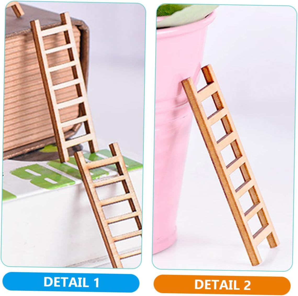 Mini scala di simulazione: realizzata con materiale in legno e mini scale da giardino affidabili, piccole e leggere, più pratiche da usare. Accessori per bambole: queste scale in legno non sono finite, quindi puoi colorarle o dipingerle in qualsiasi , accessori fai da te, decorazioni per scale in legno. Ornamento micro-paesaggio: realizzato in materiale di legno, nessun danno, sicuro, la scala della mini casa non è facile da rompere, , decorazione della scala in miniatura. Decorazione con scala in legno: queste scale in legno in miniatura possono far sembrare la scena della tua casa delle bambole più delicata e realistica, modello di scala paesaggistica. Mini oggetti di scena per la fotografia: questa mini scala per la casa è dotata di una , non è facile da rompere e deformare, decorazioni per scale in miniatura.
