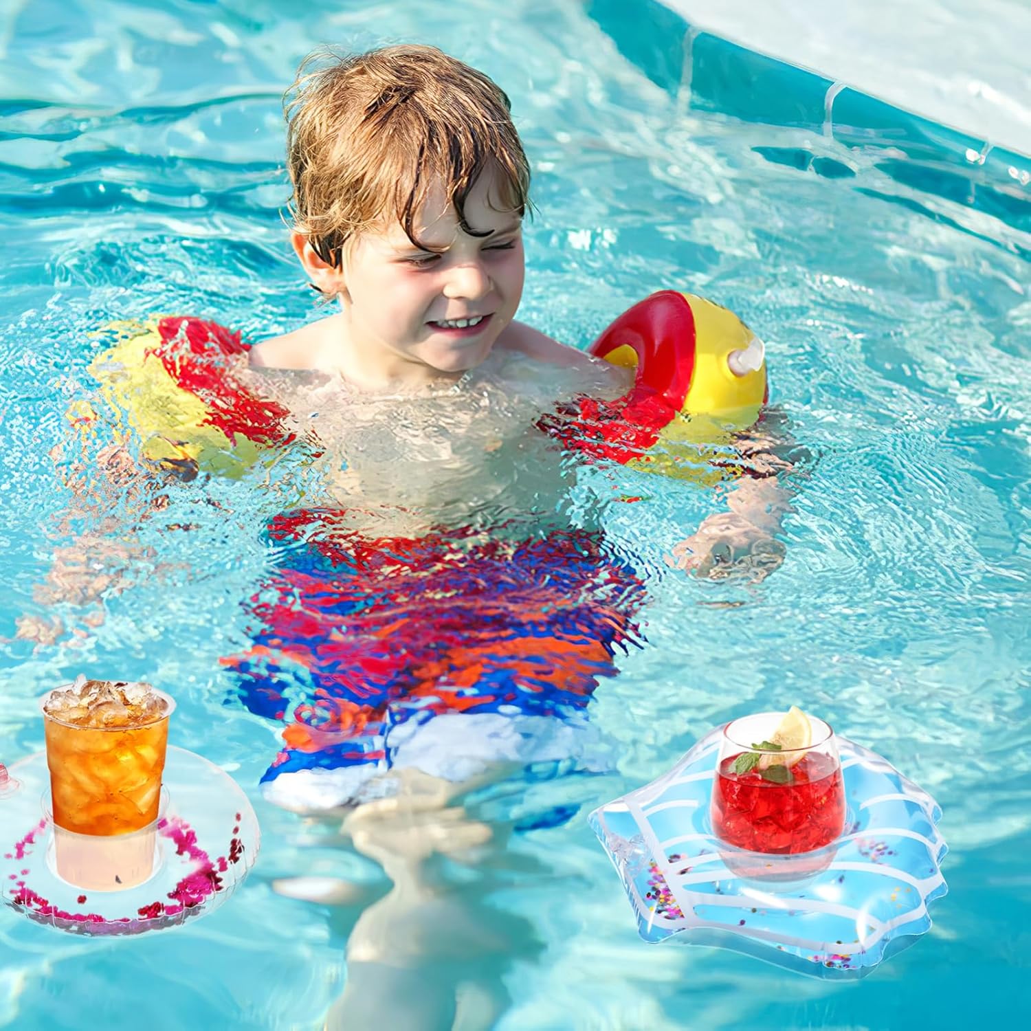 Galleggiante per bevande da piscina: la pompa dell'aria in dotazione ti consente gonfiare facilmente il portabicchieri e si adatta a bottiglie d'acqua, cannuccia e lattine soda, portabicchieri da Decorazione galleggiante per piscina: questo portabicchieri galleggiante utilizza materiale in pvc ad alta densità e valvola ritegno, che previene perdite d'aria, portabicchieri galleggiante Portabicchieri da spiaggia: questo è adatto per bicchieri, lattine per bevande e ed è una aggiunta piscina o spiaggia, portabicchieri da piscina Portabicchieri per piscina: adottando la paillettes, questo portabicchieri è adatto per feste in spiaggia o in piscina, sottobicchieri gonfiabile Galleggiante per piscina laurea: dotato valvola ritegno, questo portabicchieri gonfiabile può il possibile la perdita d'aria e anche prevenire la perdita d'aria durante il gonfiaggio, sottobicchiere galleggiante