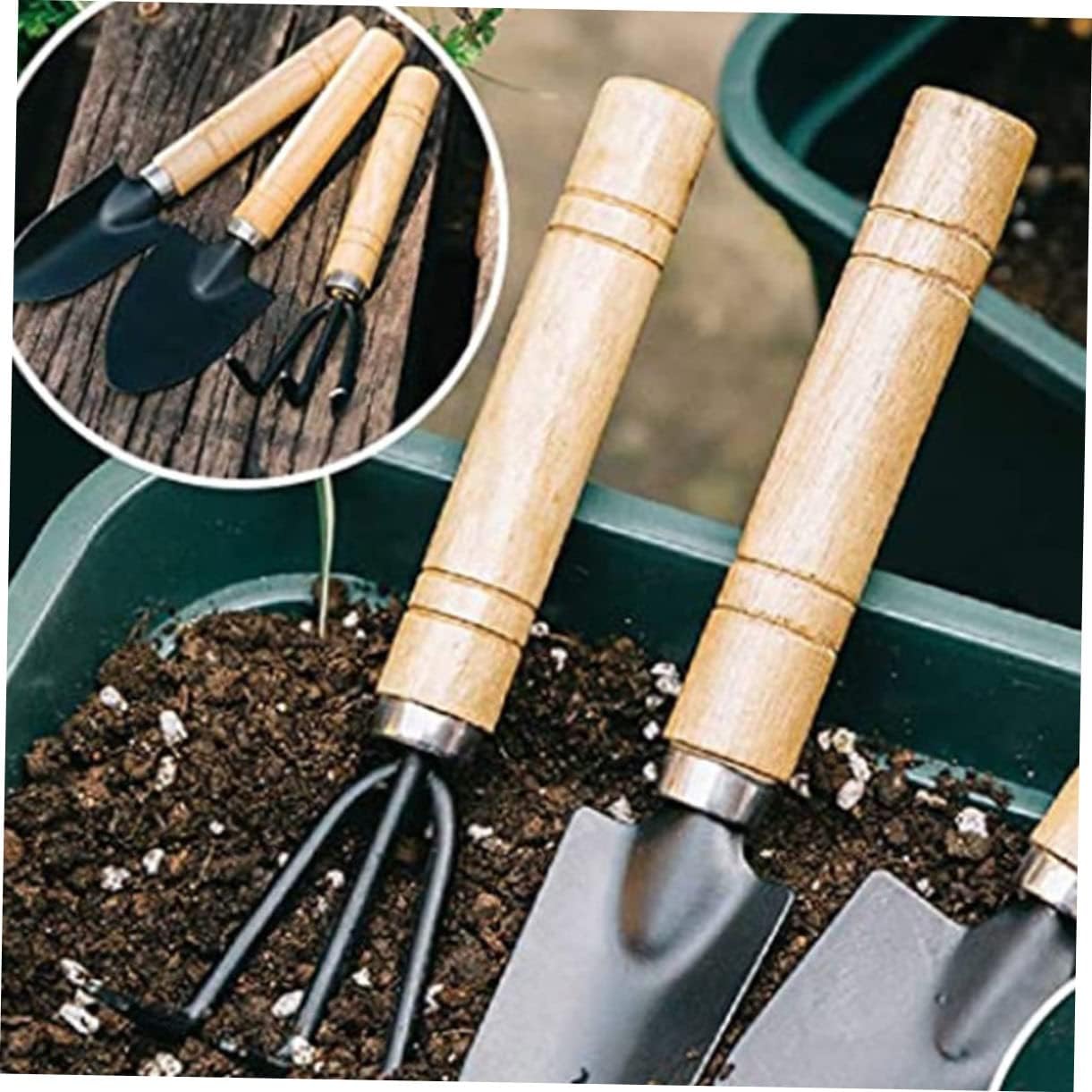 Strumento di giardinaggio in miniatura: questo set di strumenti per la piantagione di piante succulente contiene molti tipi di accessori per la piantagione, molto comodi da usare, realizzati con materiali affidabili e robusti, la superficie è liscia e non ferisce le , strumento portatile per interni Strumento per piantare: questi strumenti sono mini, facili da trasportare e di squisita fattura senza sbavature, mini strumenti da giardinaggio Attrezzi per piantare in giardino: un set di attrezzi per giardinaggio e piantagione è vario per soddisfare le tue diverse esigenze, attrezzo per piantare fiori Strumento per piantare in vaso: utilizza materiale in legno resistente, di piccole dimensioni e facile da riporre, strumenti per piantare fiori Forniture per giardinaggio: per il trapianto e la piantagione di piccoli bonsai da , attrezzo da giardinaggio portatile