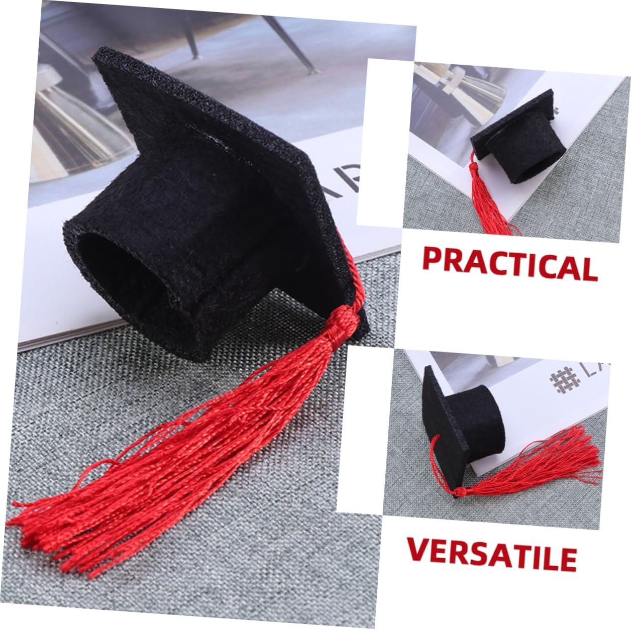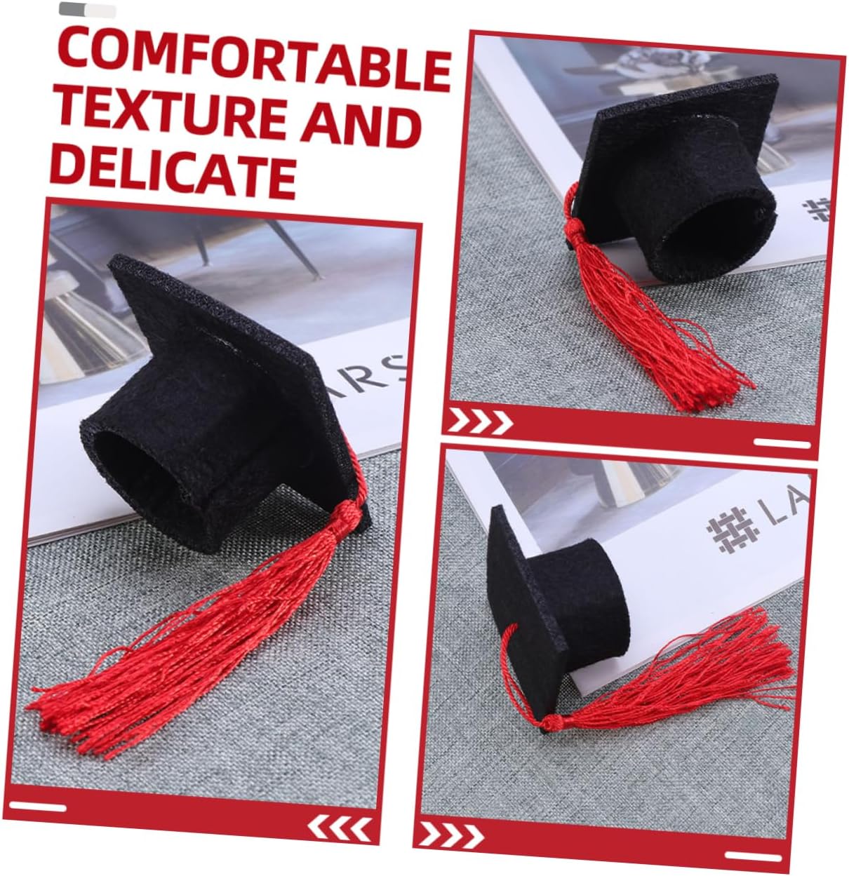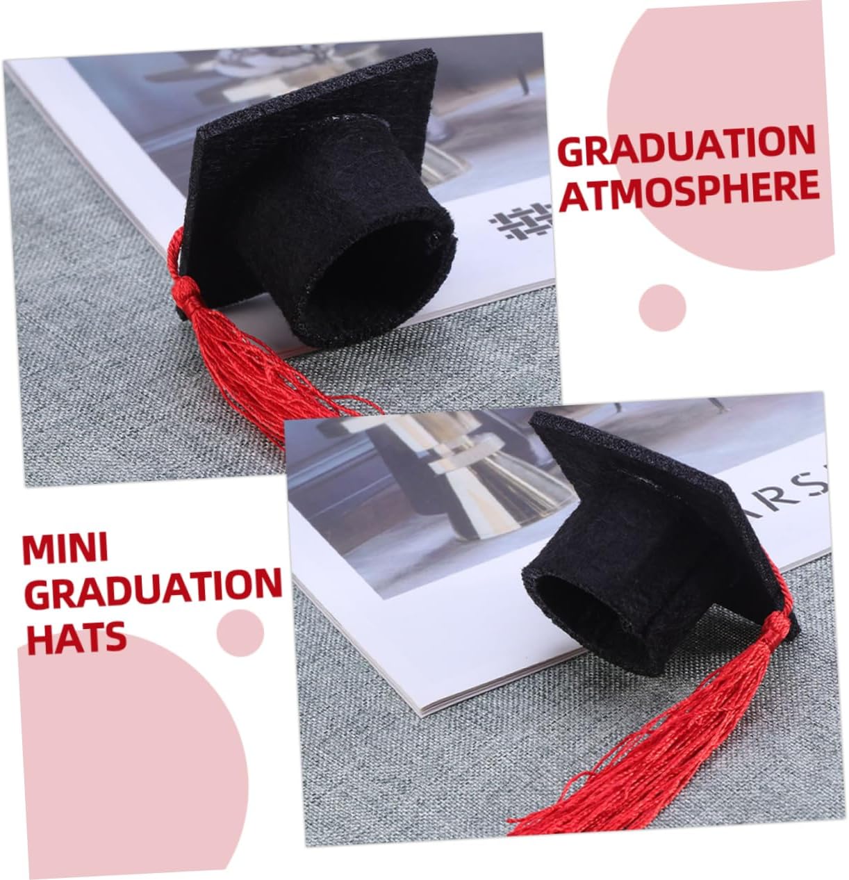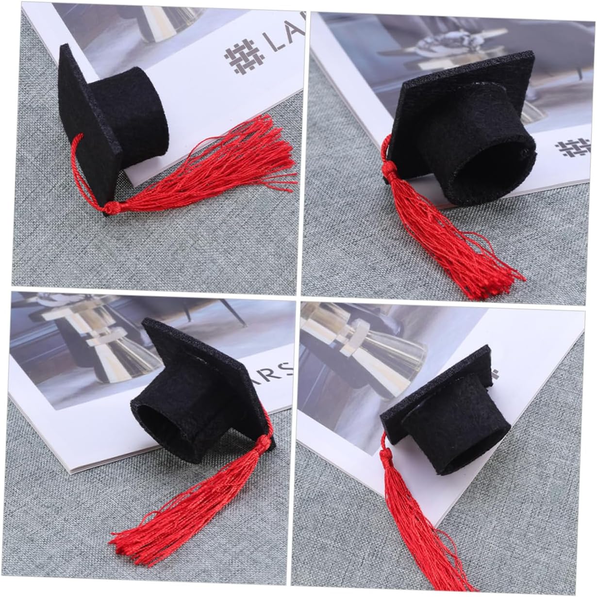 dei pacchetti 12 x cappellini da laurea in miniatura Caratteristiche - Dimensioni: 5,50X5,50X3,20 cm/2,16X2,16X1,26 pollici copricapo da laurea per bottiglie di laurea -Materiale: bomboniera per la festa di laurea in tessuto non tessuto - Colore: Mini cappellini da laurea rossi per bottiglie - Realizzati con materiali stabili e comodi da usare, non si rompono o sbiadiscono facilmente, mini decorazioni per cappelli da laurea di . - Progettato a forma di cappello da laurea, classico e creativo, adatto per decorare bottiglie di vino rosso. - I topper per bottiglie di vino regalano piccole sorprese adorabili alla tua festa di laurea e ti lasciano un momento memorabile con i piccoli bouquet di tocchi di laurea. - Come decorazioni perfette per le feste, questi copri-bottiglia possono aggiungere un'atmosfera divertente al tuo mini-tocco di laurea. - Elegante nell'aspetto, semplice e pratico, questo cappello da laureato ti regalerà un'esperienza di utilizzo piacevole. Informazioni sulle merci Topper per bottiglia con cappello di laurea Prodotto con materiale in tessuto non tessuto e riutilizzabile, con un design creativo del cappello di laurea, chic e unico. Bouquet di cappelli di laurea Utilizza metodi semplici per proteggere e decorare le tue stoviglie e le bottiglie di bevande, può aiutare ad aggiungere un'atmosfera più divertente e , adatta per la festa di laurea