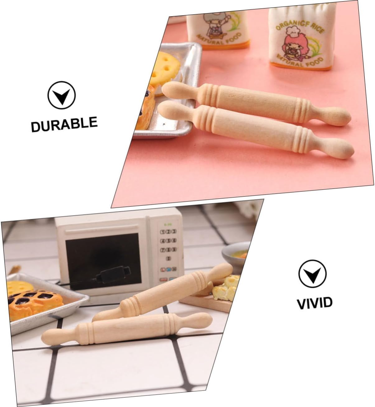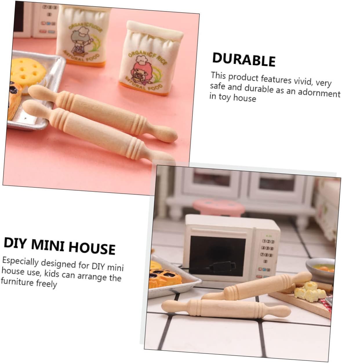 da gioco per la casa: può essere usato supporto fotografico per scattare bellissime , decorative e . Mini case: possono essere utilizzate anche ornamenti da scrivania con questo modello divertente e delicato. Accessorio per giocare con il cibo in miniatura: una scelta regalo per i tuoi amici che amano i mini oggetti in legno, decorativi e chic. Mini utensili da cucina: regali perfetti per i tuoi bambini, saranno molto felici di decorare la loro mini stanza. Piccolo utensile da cucina per bambini: realizzato in materiale di qualità, nessun danno, sicuro, facile da rompere, .