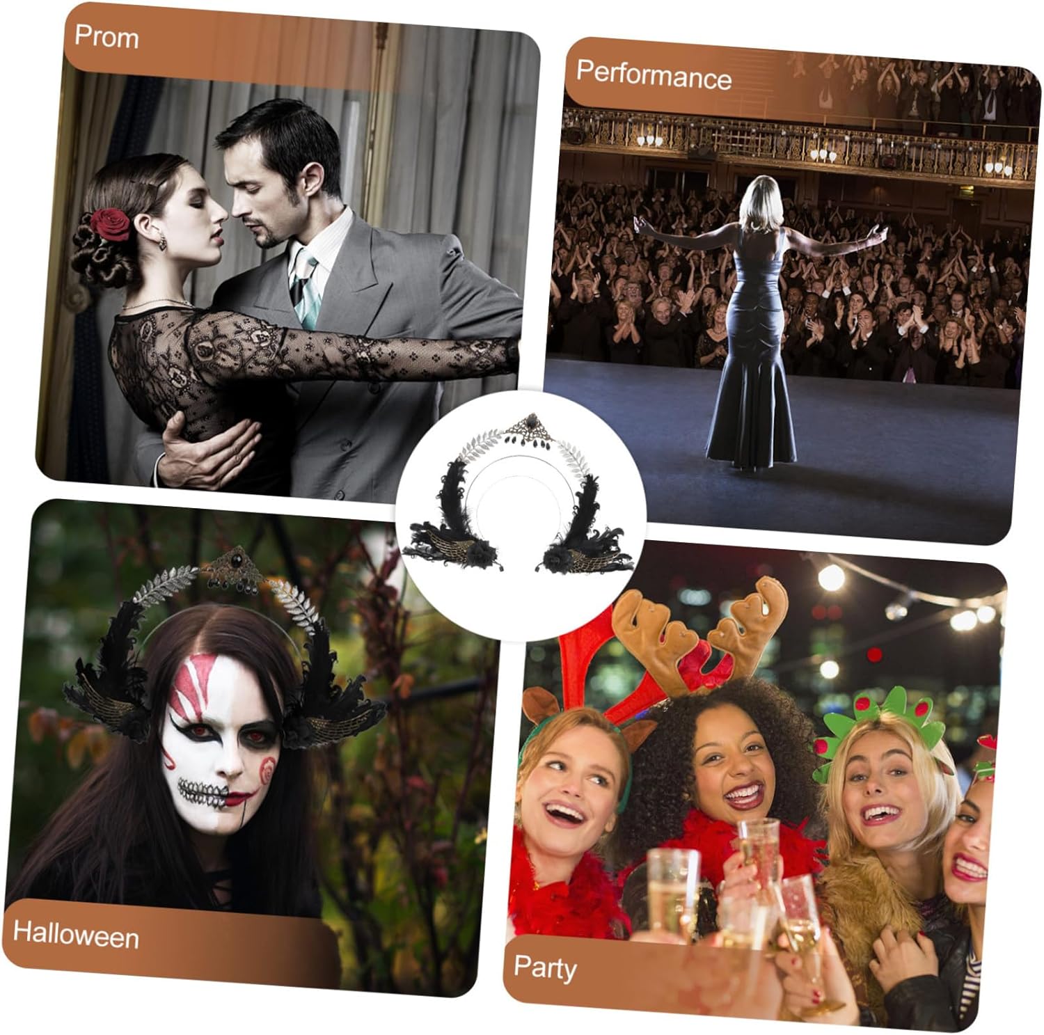 Copricapo da donna: leggero e portatile, ti offrirà una sensazione e un'esperienza di indossamento confortevoli, fascia per decorativa Copricapo da esibizione: l'arredamento delicato è squisito e bello, l'arredamento in strass lo rende più unico e lussuoso, accessorio per da ragazza Copricapo da festa: può aiutare a creare una nuova acconciatura sbalorditiva all'istante, facile da indossare e da togliere, fascia per di halloween Accessorio per in stile costume: copricapo accattivante per i tuoi , alla moda e dal design classico, può essere applicato a diverse occasioni, copricapo di halloween Copricapo da festa: meraviglioso per le amiche, questo è un accessorio per molto bello, fascia per da festa