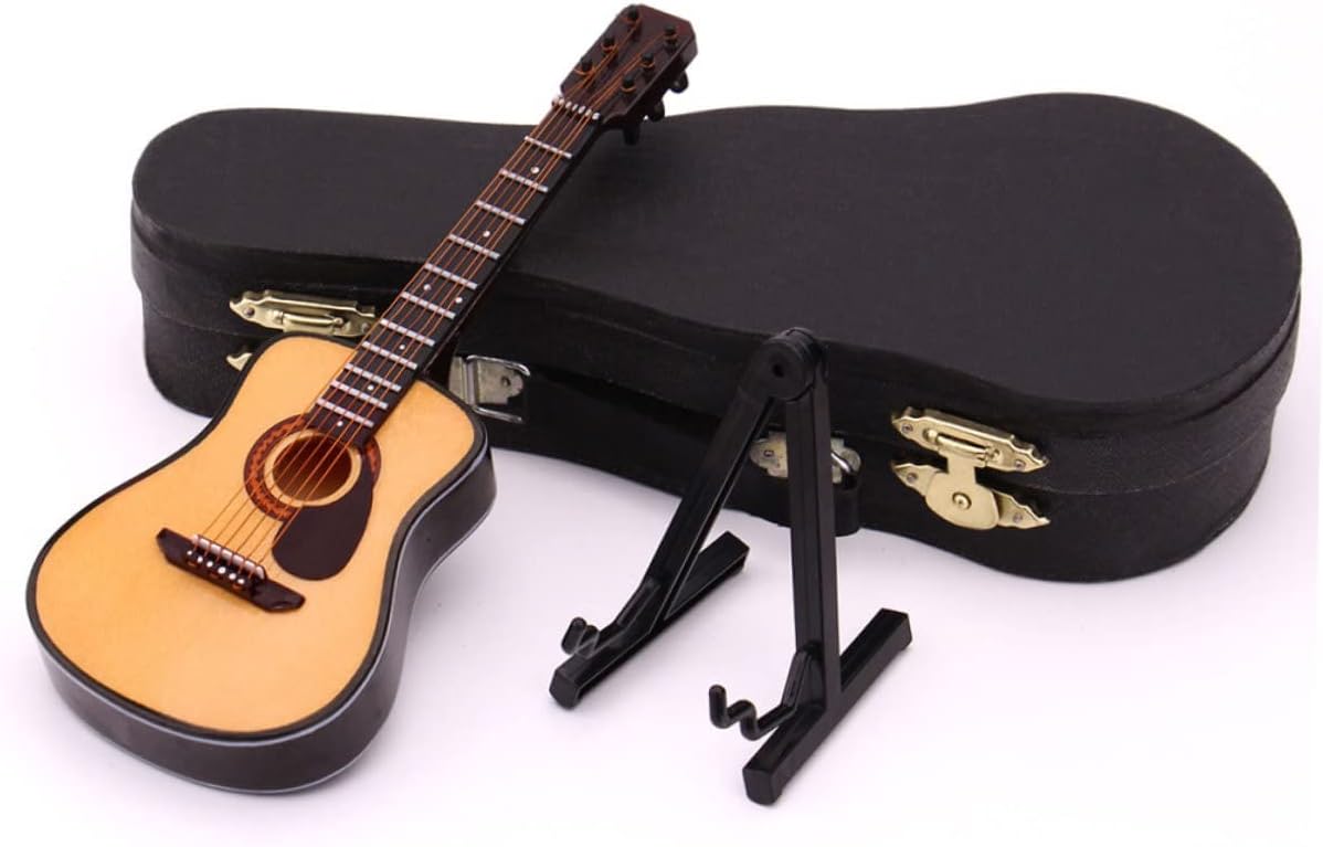 Decorazione per chitarra da tavolo: ideale per la tua famiglia, amici o colleghi, decorazione per la casa. Mini chitarra: adorabile la rende più attraente e aggiungerà un'atmosfera alla tua casa, decorazione per mini chitarra. Accessori da scrivania musicali: la pregevole fattura non sbiadisce facilmente, mini arredamento. Decorazioni per la casa: può anche servire come supporto fotografico con questo delicato modello di chitarra, modello mini chitarra. Modello mini chitarra: realizzato in chitarra, per un uso a lungo termine e non facile da deformare.