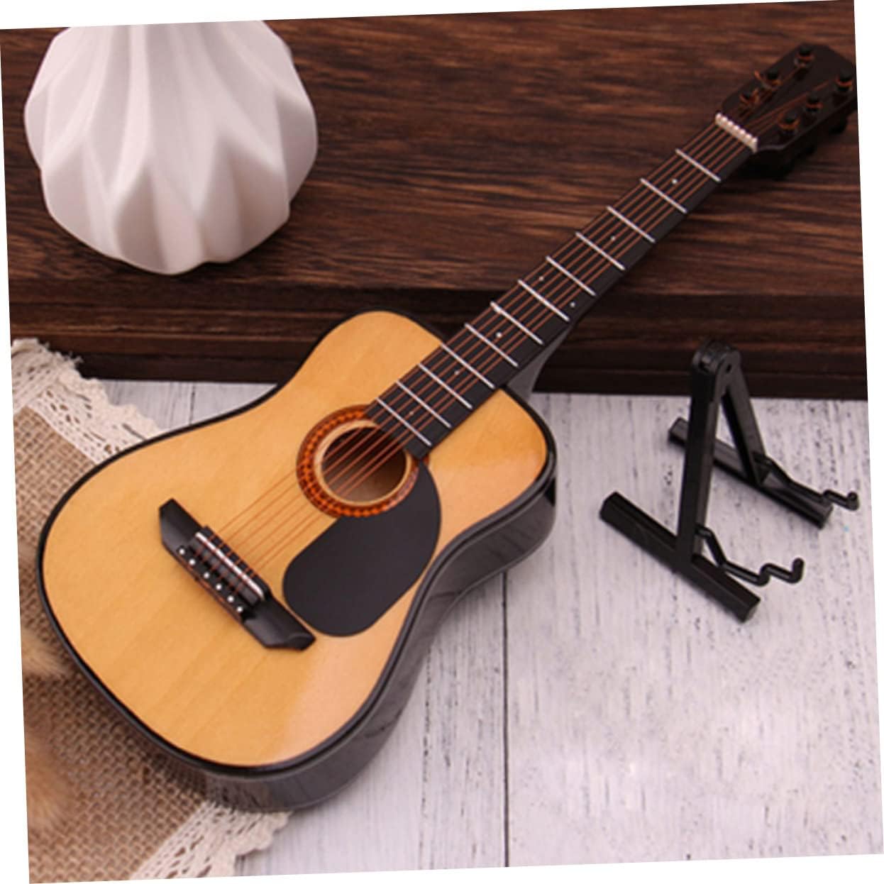 Mini ornamento per chitarra: ideale per la tua famiglia, amici o colleghi, decorazione domestica. Chitarra di compleanno: la pregevole fattura la rende facilmente sbiadita, chitarra. Modello mini chitarra: può anche servire supporto fotografico con questo delicato modello di chitarra, coprimaterasso doppio. Decorazione mini chitarra: realizzata in materiale di alta qualità, per un uso a lungo termine e facile da deformare, modello di chitarra. Arredamento musicale: adorabile lo rende più attraente e aggiungerà un'atmosfera alla tua casa.