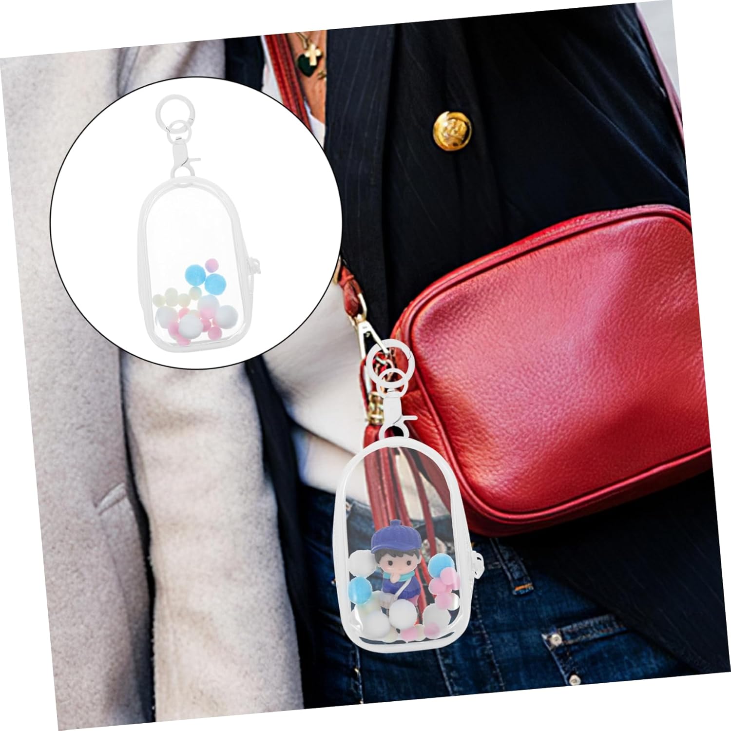 Mini borsa trasparente: appendi questa borsa per bambole alla borsa della scuola o alla valigia per un bel abbellimento, molto utile. Vetrina per mini figure - caratteristiche trasparenti: il design trasparente di questa borsa per il trasporto di bambole consente una facile identificazione della tua bambola, borsa molto portatile. Borsa piccola-- borsa trasparente: materiale chiaro e trasparente per visualizzare e visualizzare facilmente la tua bambola, materiale in pvc, visualizzare facilmente le bambole. Mini borsa trasparente per bambole: il peso è leggero, questa borsa appesa aumenterà il carico aggiuntivo della borsa ed è molto alla moda per l'uso. Portachiavi con custodia per l'adozione di materiali in pvc, questa custodia per bambole sarà pratica e di . utilizzare con fiducia.