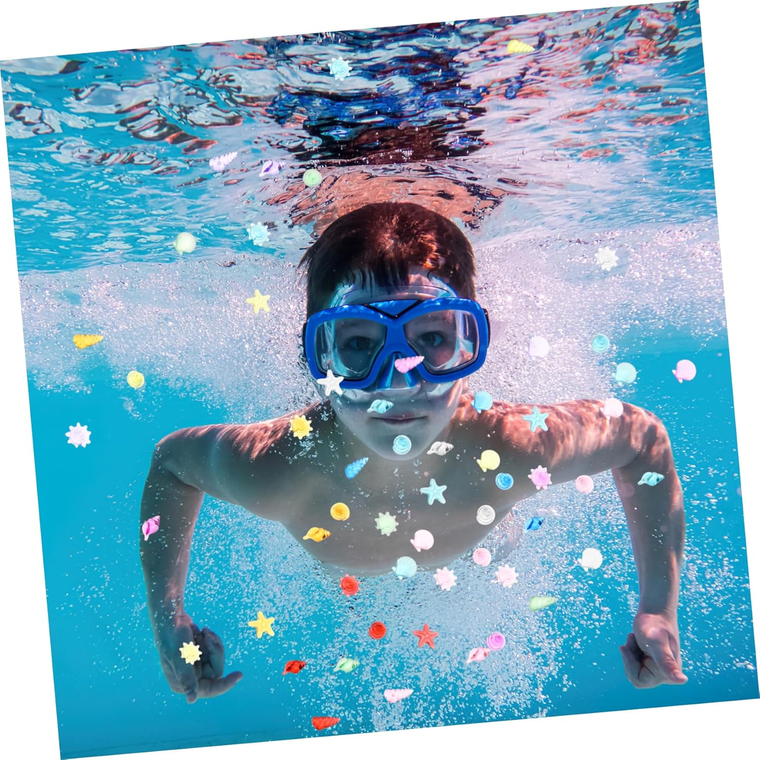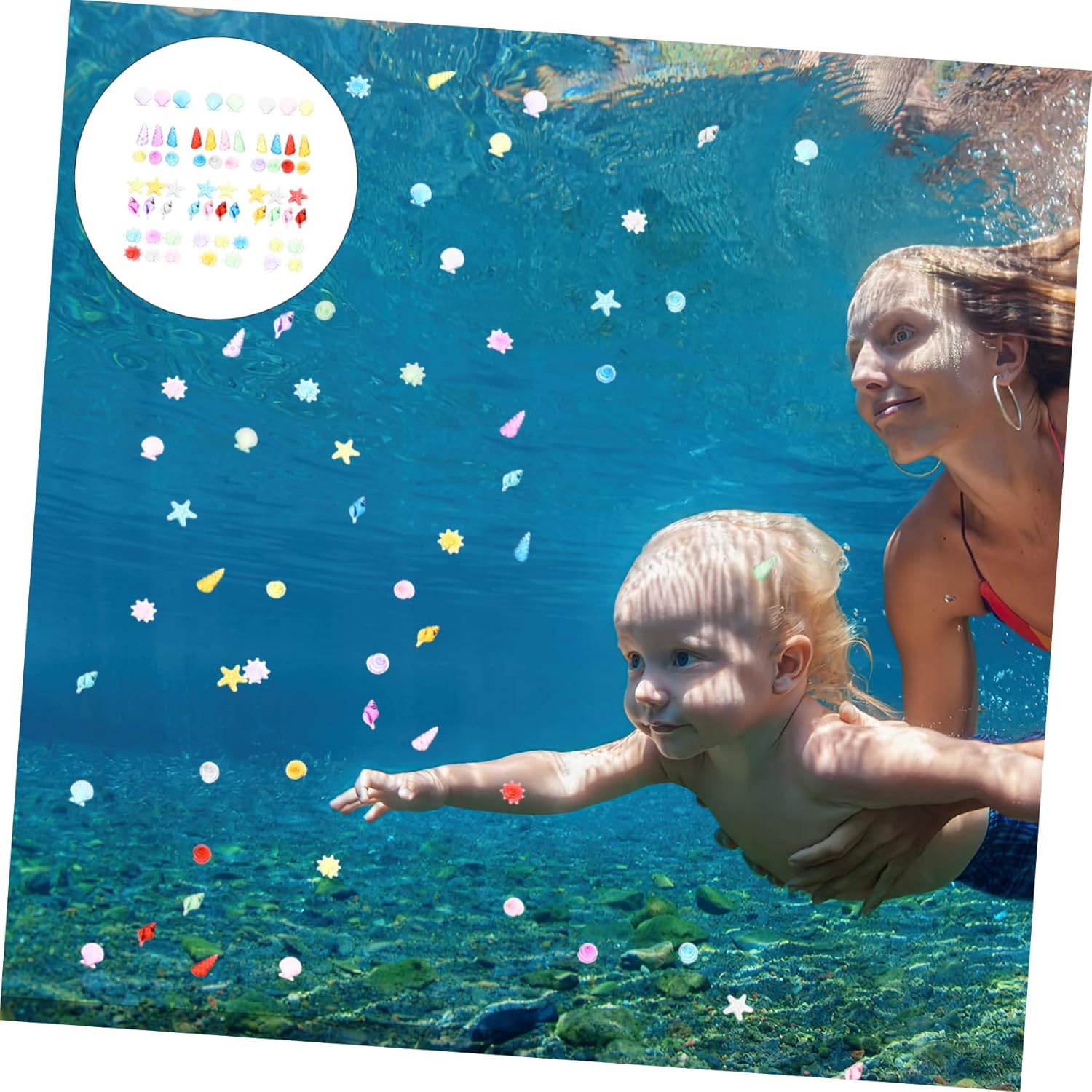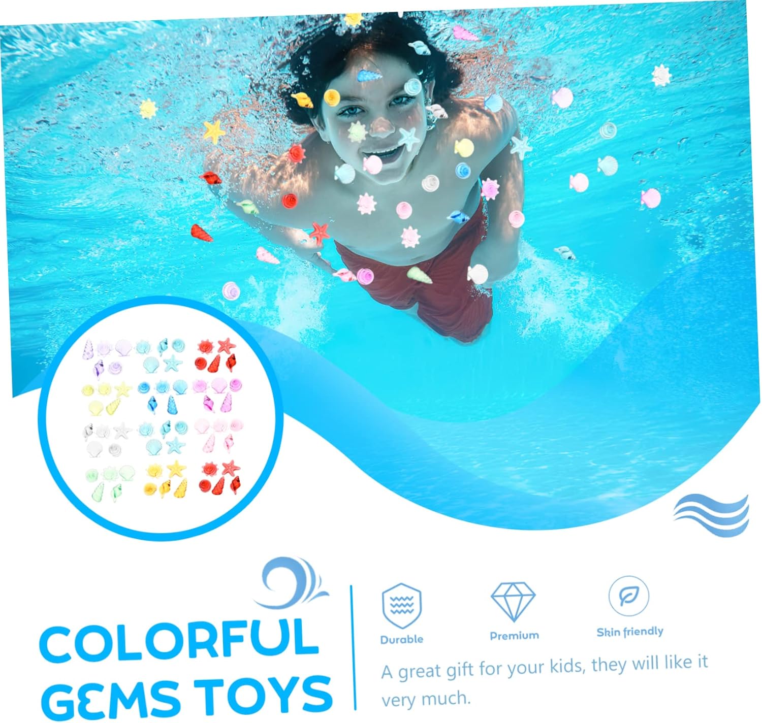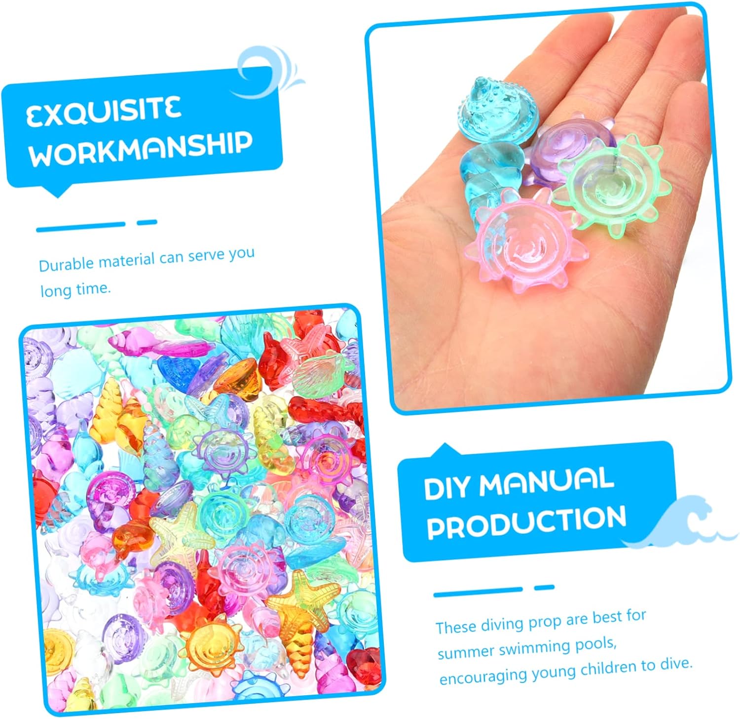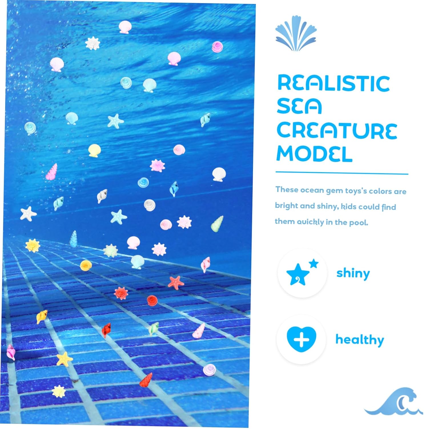 Piscina d'acqua per bambini: utilizzabile anche per la decorazione in vari luoghi giochi in spiaggia, feste in piscina, feste in spiaggia. Accessorio per giochi pirata: realizzato in , il giocattolo con pietre preziose marine è adatto a un uso duraturo. Giocattoli subacquei: giocattolo colorato con pietre preziose, sicuro per i bambini, il sbiadisce, decorativo e . Giocattoli con pietre preziose di conchiglia: i bellissimi colori e il design dall'aspetto delicato attireranno gli occhi dei bambini e conquisteranno facilmente l'amore dei bambini. Gemme per immersioni: il giocattolo serve per riempire qualsiasi tipo di da gioco, piscina, parco giochi per bambini e parco divertimenti.