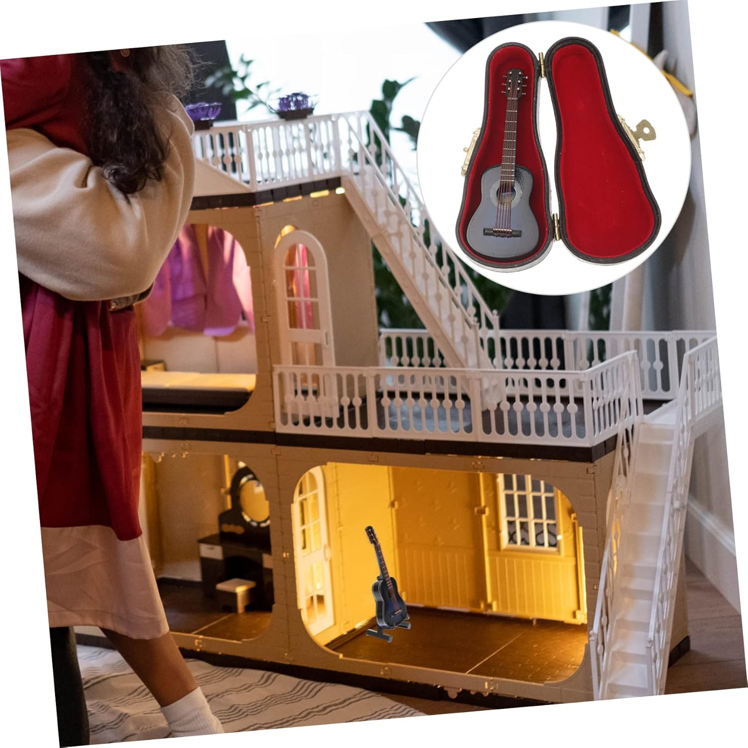 Microfono in miniatura: può essere una scelta meravigliosa e un'ottima scelta per i tuoi amici, gli piacerà moltissimo. Decorazione in miniatura: leggera e portatile: questo mini modello di chitarra di simulazione è di piccole dimensioni, leggero, facile da trasportare e facile da riporre. la mini custodia per chitarra impedisce modello di chitarra di simulazione di cadere e ha una durata. Giocattoli per bambini: con il suo design unico e i dettagli meravigliosi, conquisterà il tuo amore e ti offrirà una buona . Modello di chitarra decorativo: puoi inviarlo alle tue famiglie e ai tuoi amici, saranno felici per questo prodotto pratico. con il suo design unico e i meravigliosi dettagli, conquisterà bene il tuo amore e ti offrirà una buona . Chitarra in miniatura per casa delle bambole: il modello è piccolo e compatto, può essere posizionato sulla scrivania, sull'armadietto e in altri luoghi.