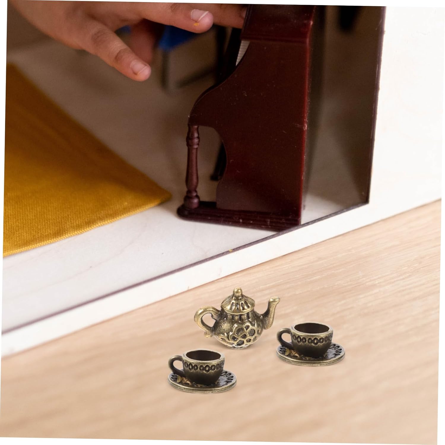 Mini modelli di case delle bambole: realizzati con robusti materiali in lega, che garantiscono la durata del mini set di modelli in , molto utili. Accessori per il gioco di finzione: antico, aggiunta di atmosfera culturale alla tua casa delle bambole, soddisfa le tue esigenze di decorazione. Giochi di finzione di ruolo: modelli di set da tè in miniatura finemente realizzati per la casa delle bambole. vintage, aggiungendo un tocco classico alla casa delle bambole. Utensili in miniatura: il mini ornamento è un materiale in lega con lavorazione delicata e buon effetto decorativo. Tazza da tè della casa delle bambole: le dimensioni compatte della teiera consentono un facile posizionamento in qualsiasi scena della casa delle bambole, rendendola un accessorio versatile per la tua collezione.