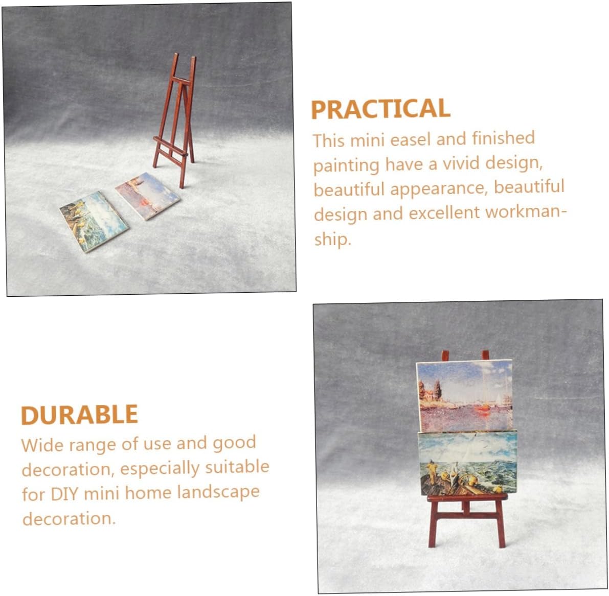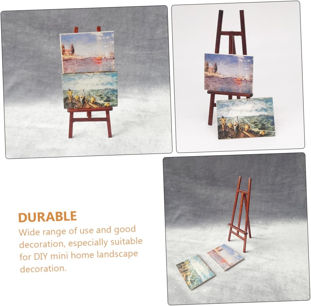 Accessori per casetta: dal design semplice, chic e alla moda, il prodotto è compatto e leggero, comodo da trasportare, cavalletto per dipingere . Modello mini cavalletto: splendidamente realizzato e realistico, con un alto grado di riproduzione realistica, quindi lo adorerai moltissimo, mini casa delle bambole. Mini dipinti finiti per la casa: questo mini cavalletto e il dipinto finito hanno un design vivido, un bell'aspetto, un bel design e un'eccellente fattura, cavalletto per pittura in miniatura. Mobili da cavalletto: ornamenti da cavalletto di simulazione in miniatura, forniture per la decorazione del paesaggio fai da te, decorazioni in miniatura. Mini cavalletto per casa: design raffinato e artigianato eccellente, il design unico lo rende più leggero e compatto, modello di cavalletto per casa delle bambole.