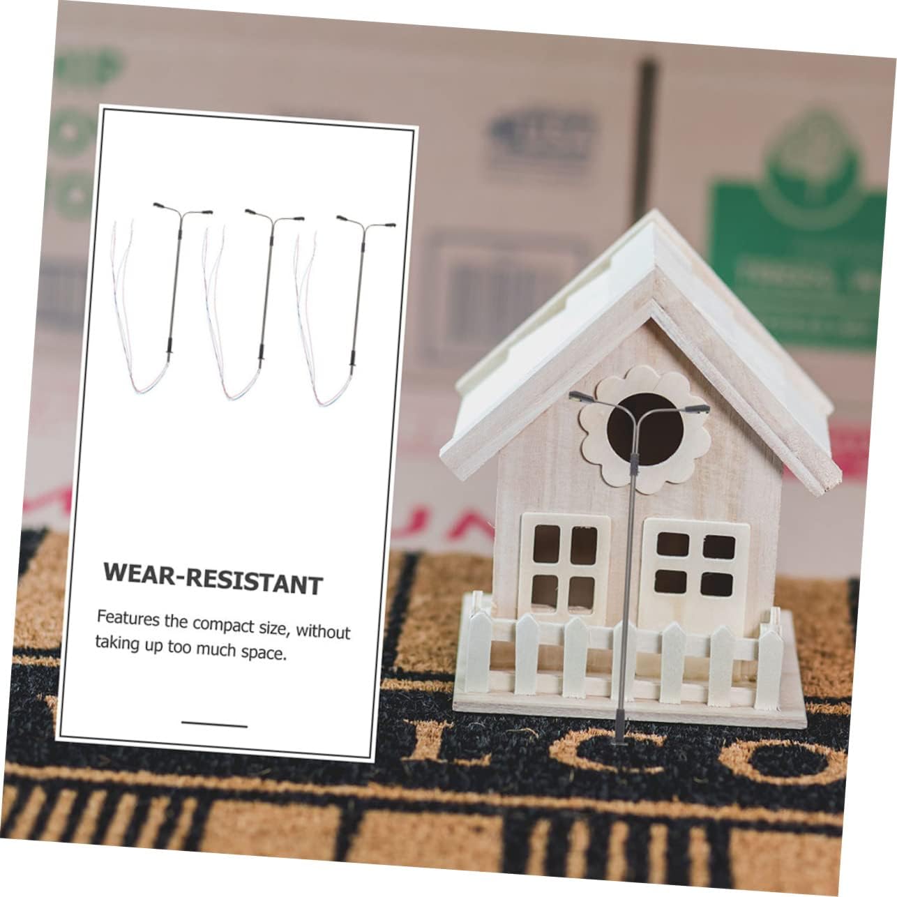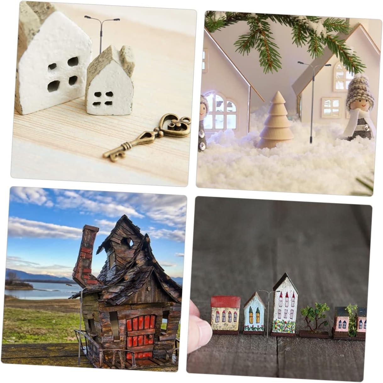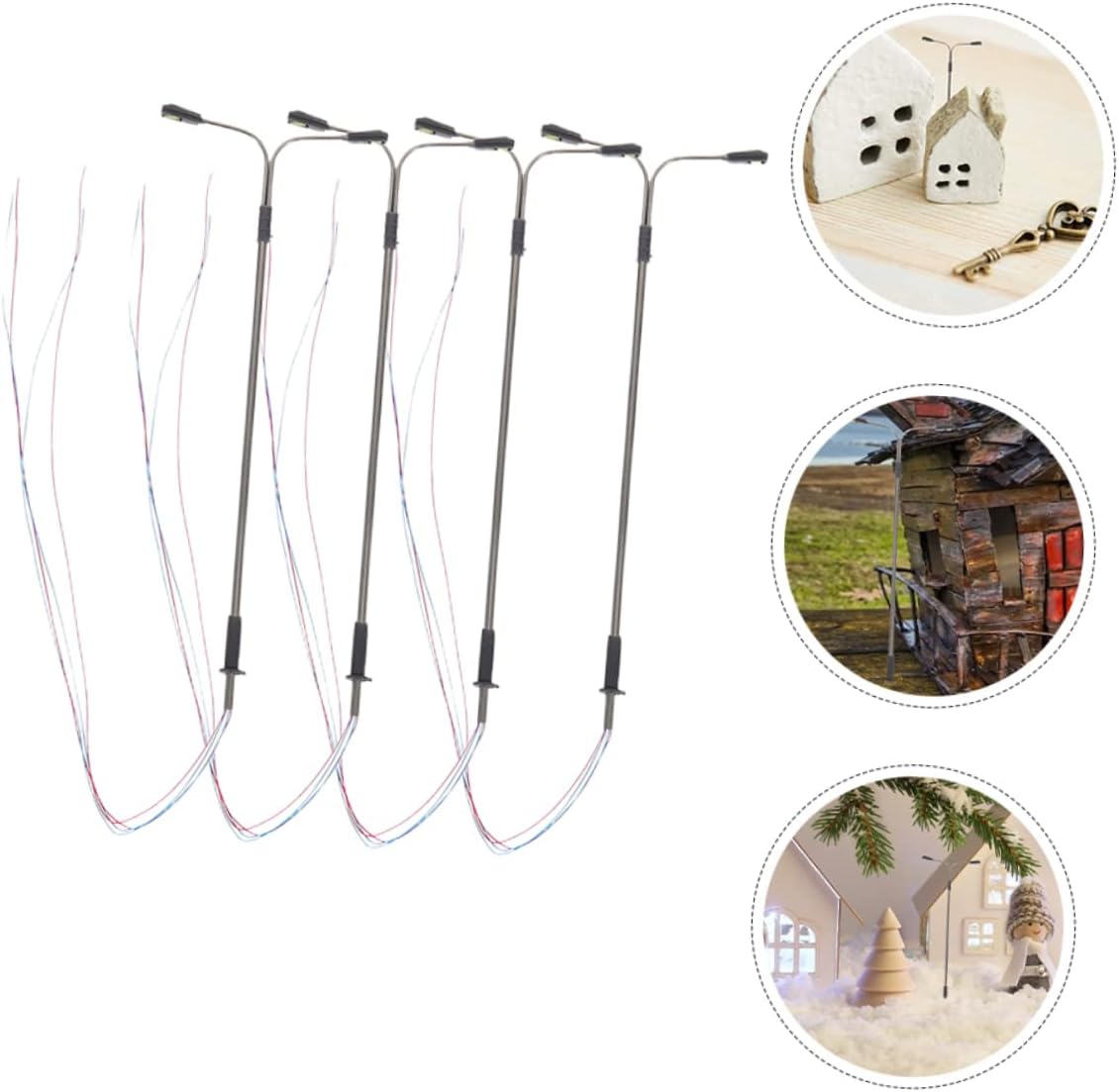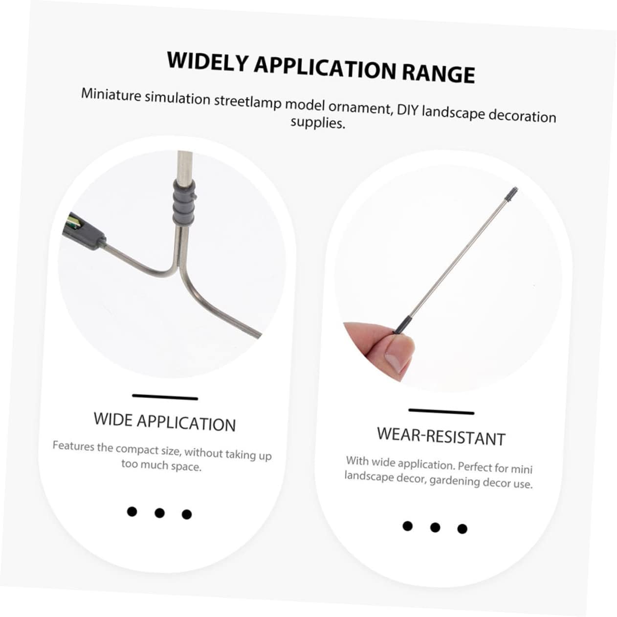 Accessori per mobili per case delle bambole: i modelli di lampioni in miniatura adottano un design semplice e dimensioni ridotte, facili da usare come modelli di lampioni per l'arredamento di scene in miniatura, mini lampioni stradali per case delle bambole. Lampioni in scala 1:150: i lampioni in miniatura sono delicati nei dettagli, aggiungendo un tocco di atmosfera alla mini casa, lampione della casa delle bambole. Modello di lampione in miniatura: i lampioni in miniatura sono facili da installare e possono essere inseriti in qualsiasi scena in miniatura, adatti anche per decorazioni su tavoli di sabbia, lampioni in miniatura. Bambola: i lampioni in miniatura sono realizzati in plastica, materiali in acciaio inossidabile, garantendo durata e uso duraturo, lampione delle case delle bambole. Modello di luce di via: i modelli di mini lampioni forniscono una decorazione luminosa e realistica che esalta il realismo della scena, mini accessorio per la casa.