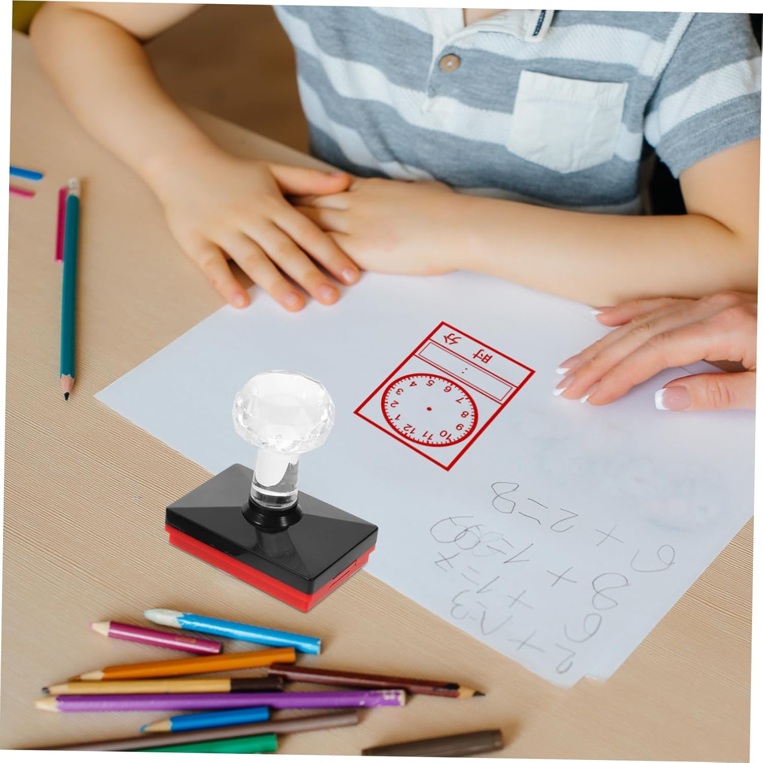 Timbri con orologio: il timbro orologio migliora le abilità pratiche dei bambini creando quadranti di orologio, esprimendo creatività, timbro orologio digitale e analogico. Francobolli didattici per orologi: il timbro è piccolo e leggero, i bambini possono facilmente manipolarlo, stampatori per bambini. Giocattoli con timbro per orologio: questo timbro per orologio è molto comodo da usare, basta rimuovere questo timbro, puoi facilmente un orologio chiaro, timbratore per orologio. Timbro autoinchiostrante per la classe: strumento conveniente per insegnare ai bambini gli orari e i quadranti dell'orologio, aiutare i bambini a imparare e i quadranti dell'orologio, timbri per orologi per bambini. Sigilli dell'orologio: il modello dell'orologio è chiaro e dettagliato, molto facile da imparare e comprendere per i bambini, stampatore dell'insegnante.