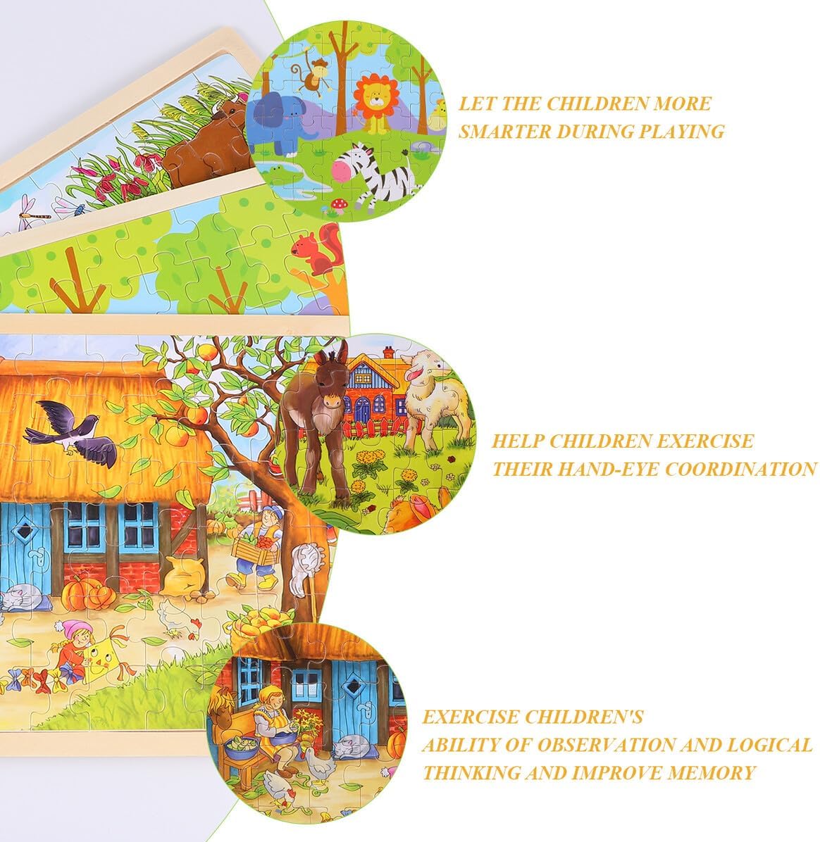 Soluzione educativa divertente: I Wooden puzzle toys sono composti da 3 set di puzzle di 60 pezzi ciascuno, con temi di animali da zoo, fattoria, stagno e casetta, ideali per stimolare la dei durante il gioco Dimensioni ottimali e quantità generosa: Ogni puzzle misura circa 30x22,5 cm, offrendo una sfida adatta per diverse età e garantendo ore di divertimento con più pezzi per apprendimento approfondito Materiale legno levigato sicuro: Realizzati in legno con finitura liscia, questi puzzle per favoriscono un'esperienza tattile piacevole e proteggono le mani dei più piccoli durante il montaggio Adatti a e ragazzi: Questi puzzle animali sono perfetti per sviluppo cognitivo di e ragazzi, aiutando a migliorare coordinazione occhio-mano e capacità di seguire istruzioni semplici Ideali per occasioni speciali: Perfetti come gioco educativo per compleanni o festività, questi puzzle in legno colorati offrono un modo creativo per trascorrere il tempo libero nei giorni di festa o famiglia