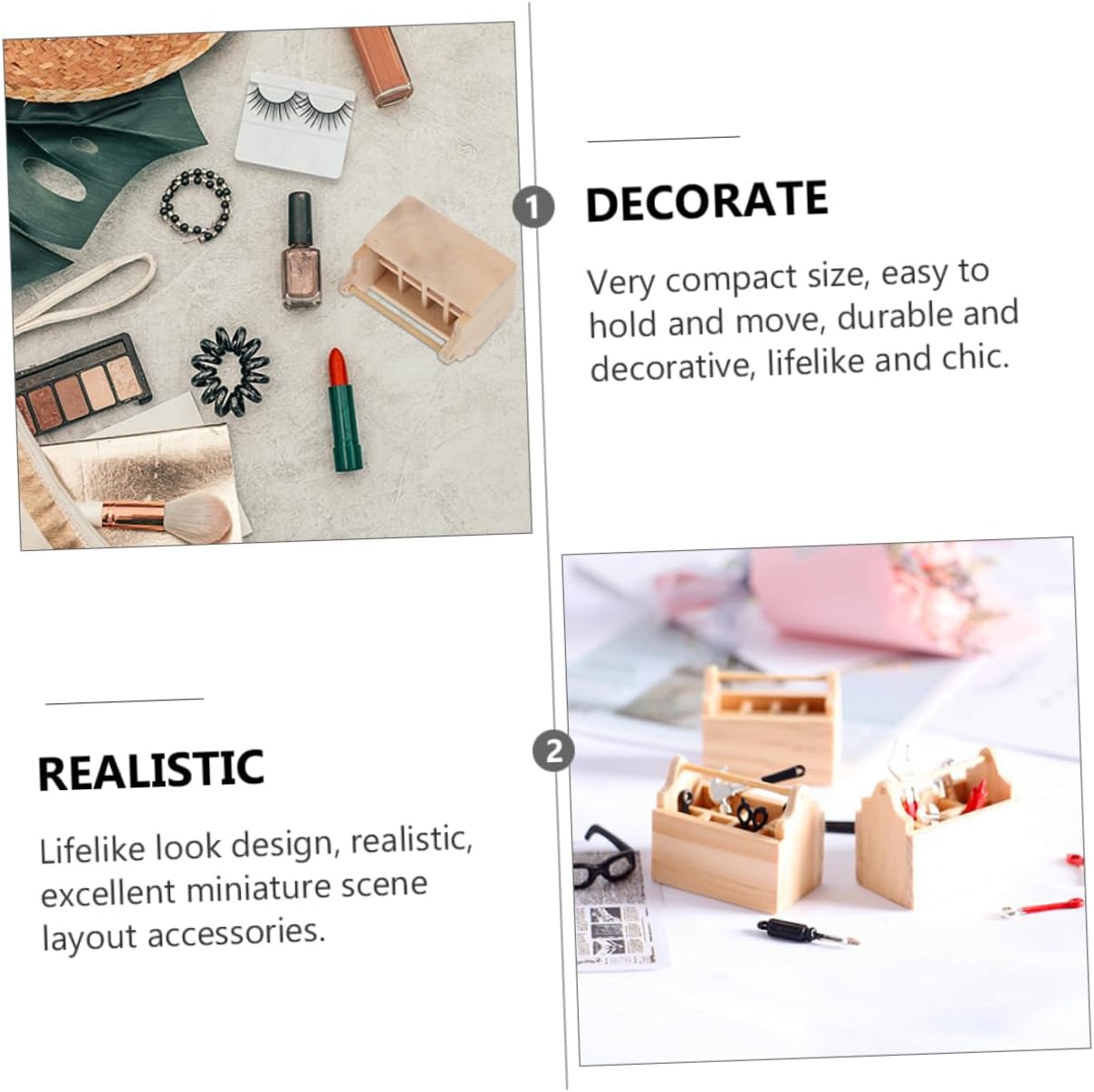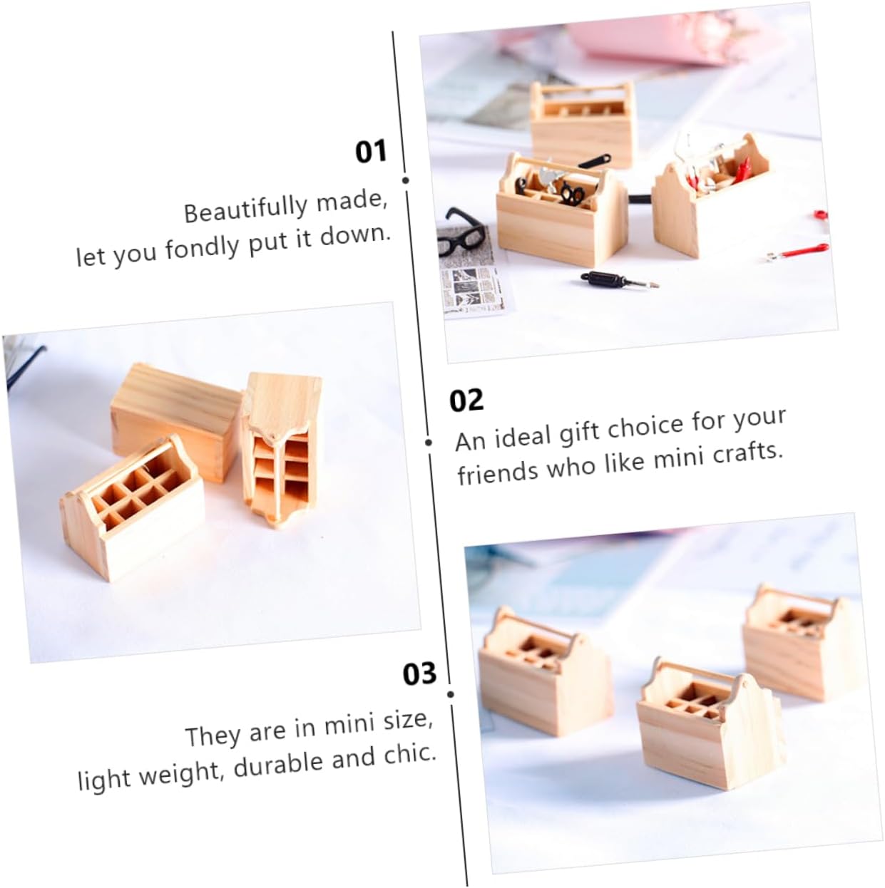 Oggetto fotografico: presenta una forte durata, non facile da rompere, modello di mobile. Decorazione in miniatura: allo stesso tempo, può anche aumentare l'atmosfera artistica della stanza dei bambini, della cassetta degli attrezzi della mini casa. Mini arredamento per mobili: forma unica, in linea con il concetto di vita reale, arredamento in legno fai da te. Mini cassetta degli attrezzi: il prodotto ha una forma per soddisfare le diverse esigenze, accessorio per mobili. Porta della cassetta degli attrezzi in legno: ideale per i tuoi bambini, saranno molto felici di decorare la loro mini casa, cassetta degli attrezzi in miniatura.