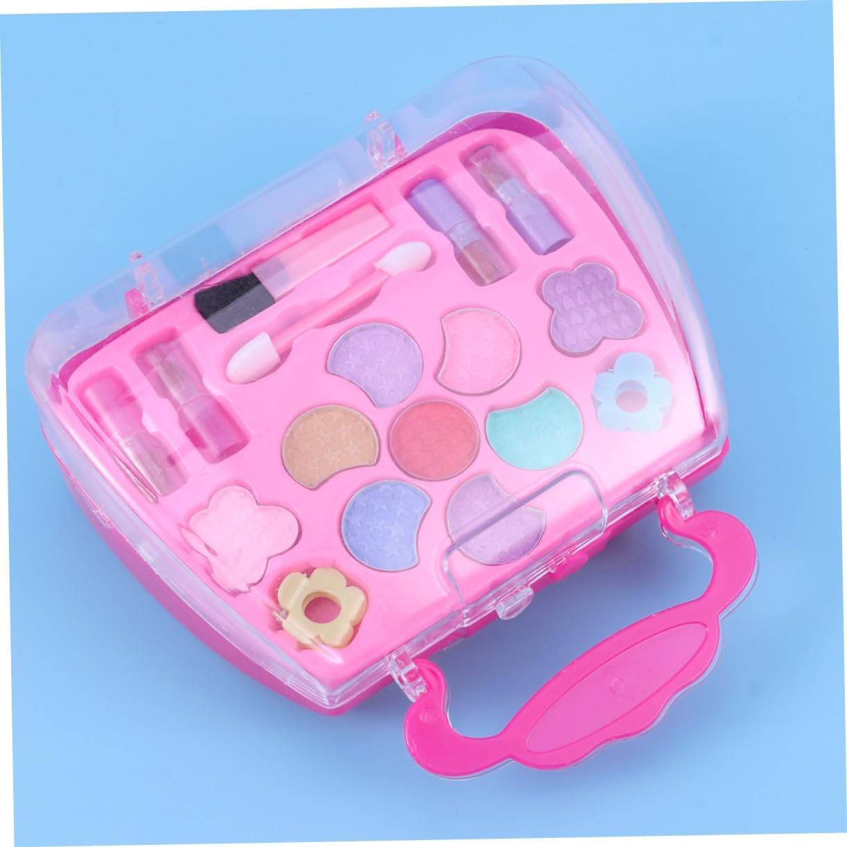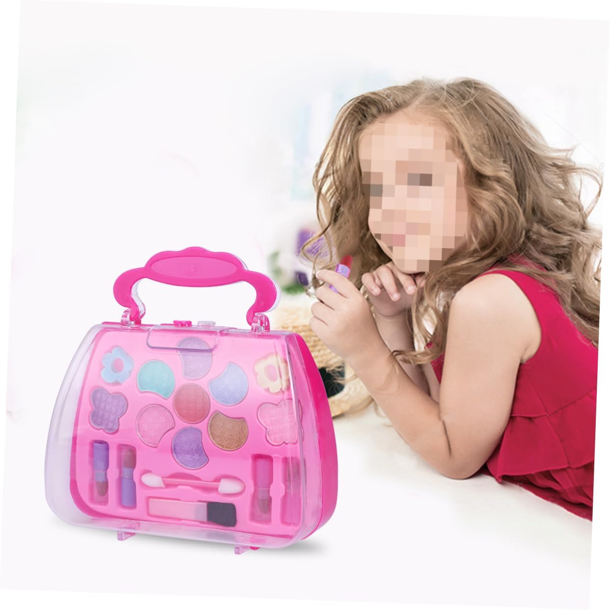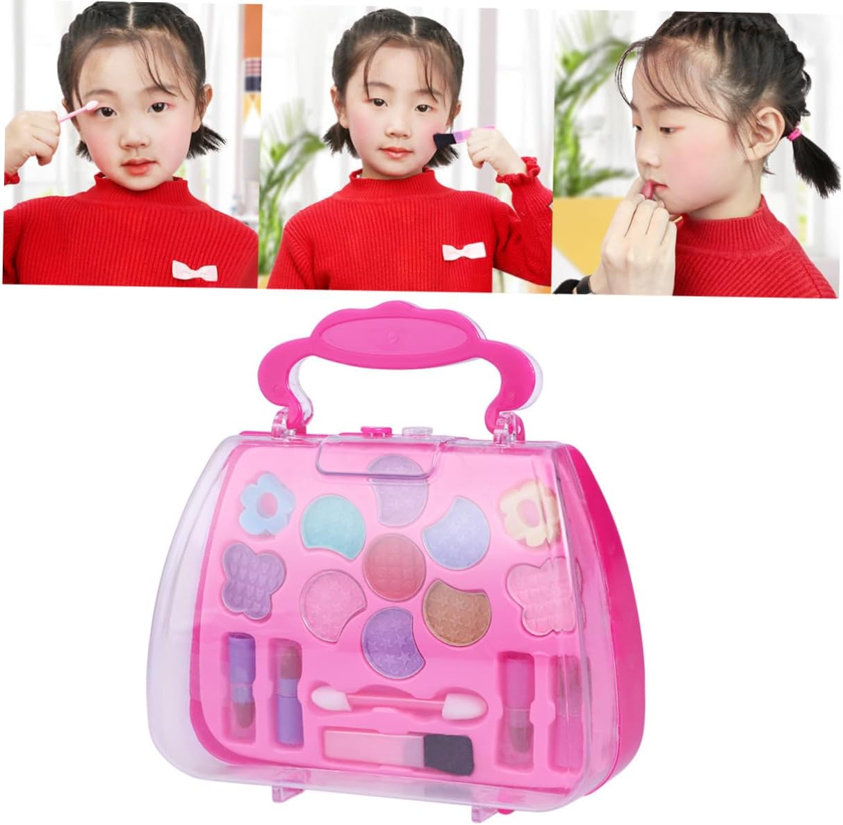 Kit trucco per bambini per ragazze: con custodia per il trasporto, facile da riporre e imballare, adatto per giocare all'asilo, a casa o per ammazzare il tempo in macchina durante il viaggio, giocattoli cosmetici per ragazze. Cosmetici finti giocattoli: tutti gli articoli hanno un design realistico, realizzati in plastica e sicuri per bambini e ragazze. Kit per il trucco: è abbastanza piccolo da poter essere messo nella borsa, i bambini possono portarlo in qualsiasi momento, fingendo un kit per il trucco. Valigetta per il trucco per bambini: tante opzioni di che terranno occupati i bambini per ore di divertimento, giocattolo per il trucco per bambini. Custodia per il trucco per bambini: per le tue ragazze nel loro compleanno, festa dei bambini o altri giorni speciali, custodia per il trucco per bambini.
