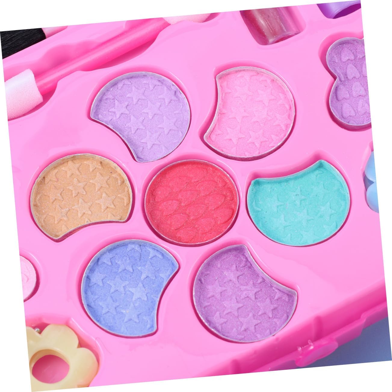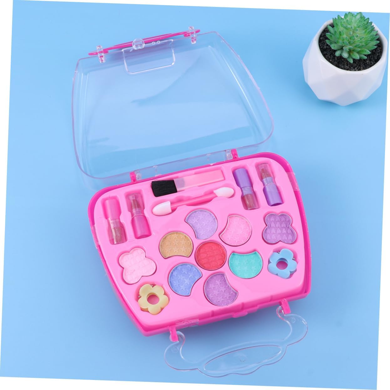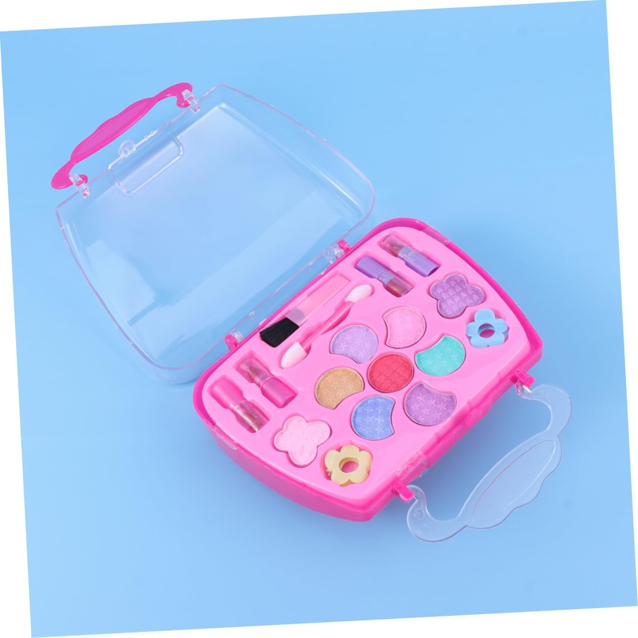 Kit trucco per bambini per ragazze: con custodia per il trasporto, facile da riporre e imballare, adatto per giocare all'asilo, a casa o per ammazzare il tempo in macchina durante il viaggio, giocattoli cosmetici per ragazze. Cosmetici finti giocattoli: tutti gli articoli hanno un design realistico, realizzati in plastica e sicuri per bambini e ragazze. Kit per il trucco: è abbastanza piccolo da poter essere messo nella borsa, i bambini possono portarlo in qualsiasi momento, fingendo un kit per il trucco. Valigetta per il trucco per bambini: tante opzioni di che terranno occupati i bambini per ore di divertimento, giocattolo per il trucco per bambini. Custodia per il trucco per bambini: per le tue ragazze nel loro compleanno, festa dei bambini o altri giorni speciali, custodia per il trucco per bambini.