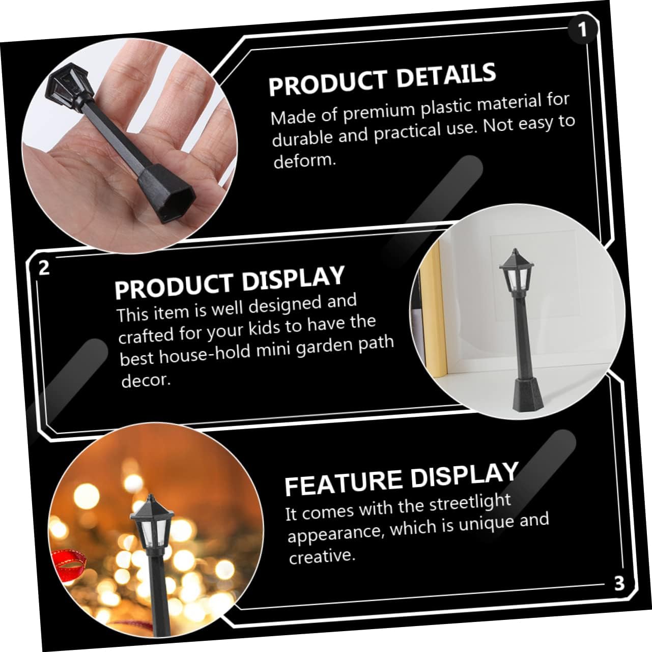 Lampada fata: realizzata in materiale plastico di alta qualità per un uso pratico. facile da deformare. Modello di lampione: materiale: gli accessori per l'illuminazione del paesaggio in miniatura sono robusti e facili da rompere e deformare. Piccola casa: 【 perfetto】 la squisita fattura lo fa sembrare un lampione, che può essere usato per la tua famiglia o i tuoi amici a natale, compleanno, , , ecc. Lampione stradale per casa delle bambole: progettato in dimensioni mini e compatte, è portatile, comodo da trasportare o facile da posizionare. Modelli di lampioni: realizzati con materiali di qualità e uso pratico. facile da deformare.