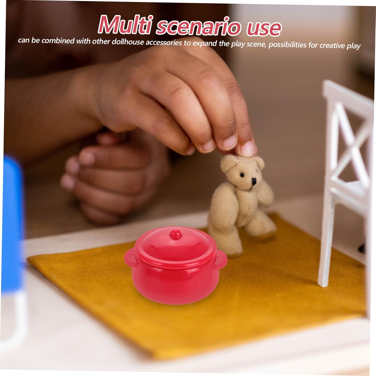 Aggiunta colorata: il pentolino in plastica aggiunge un tocco luminoso alla cucina della tua casa delle bambole, rendendola più vivace e coinvolgente per i Esperienza culinaria realistica: la scena di cucina in miniatura consente ai di simulare vere esperienze culinarie, migliorando il loro gioco fantasioso Set completo: questo set di pentole giocattolo comprende vari modelli di mobili da cucina, arricchendo la configurazione della casa delle bambole e offrendo più opzioni di gioco Artigianato dettagliato: finemente realizzato con dettagli realistici, questo set migliora il fascino visivo della casa delle bambole, rendendola più attraente Gioco espandibile: può essere combinato con altri accessori per la casa delle bambole per espandere la scena di gioco, offrendo possibilità di gioco creativo