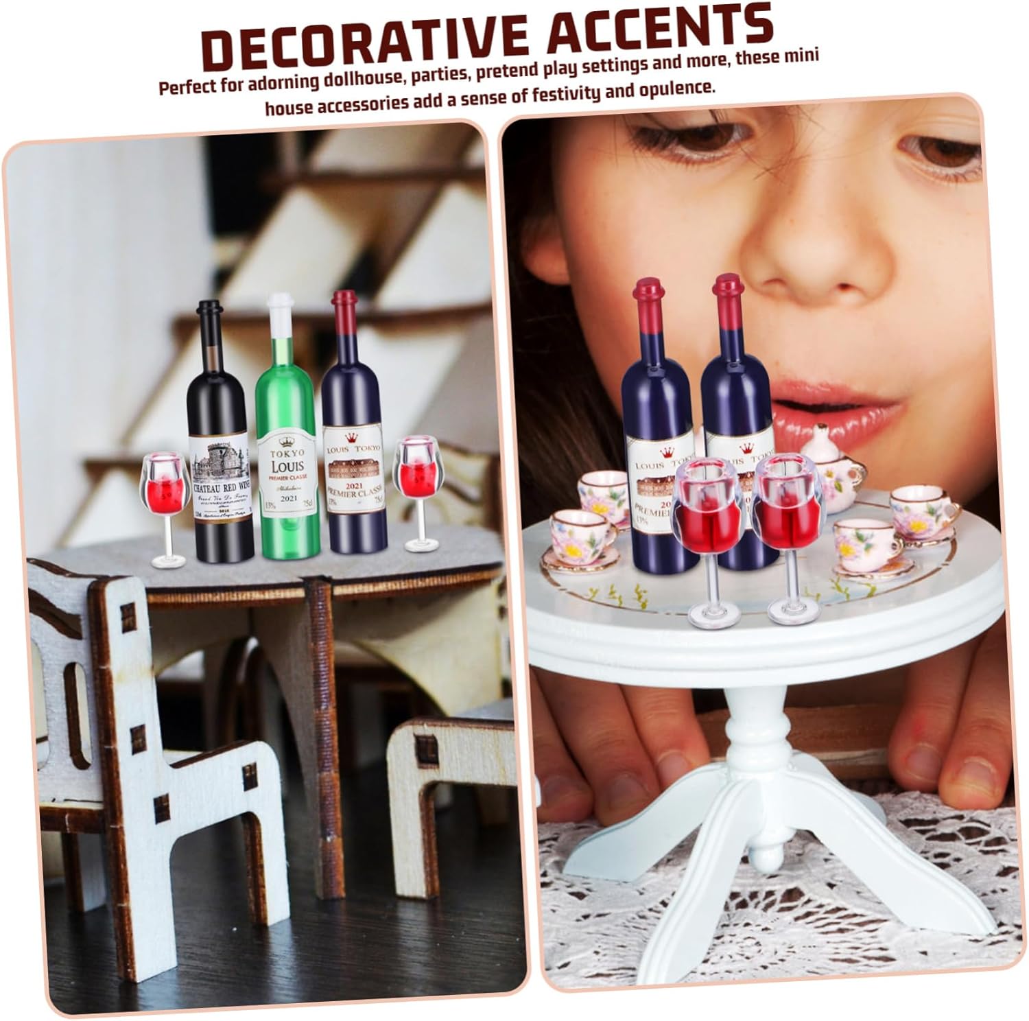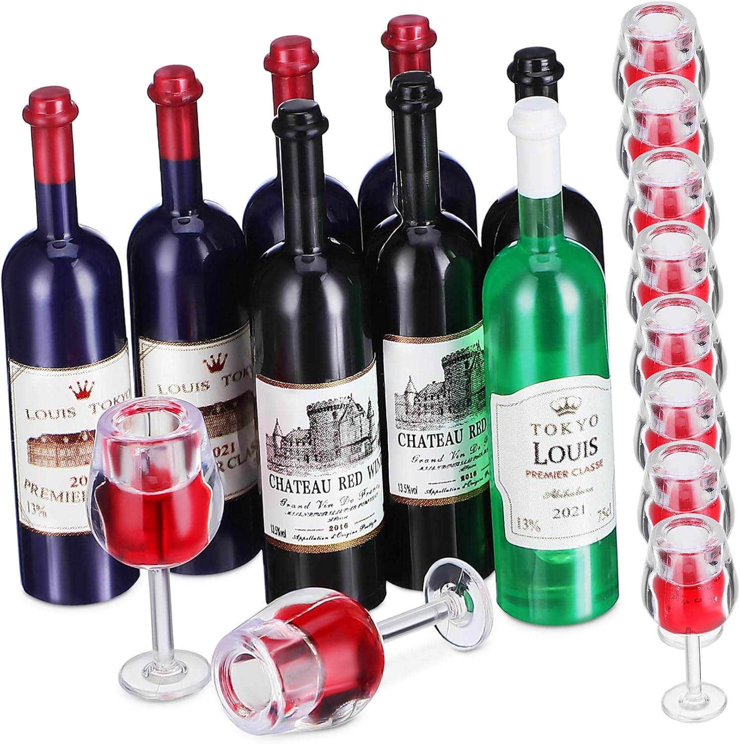 Decorazioni per le case delle bambole: dettagli realistici: la replica meticolosa assicura che queste mini bottiglie di vino e bicchieri sembrino una versione in miniatura della cosa reale, migliorando l'autenticità delle scene della tua casa delle bambole e degli accessori della casa delle bambole. Versatori-- pezzi decorativi: ideali per le sale da pranzo delle case delle bambole, i bar, le celebrazioni o come di una collezione, queste miniature aggiungono un tocco di festività e a qualsiasi , mini bevanda alla birra. Tappatore di bottiglia-- e sicuro: realizzati in plastica, questi accessori per casa delle bambole sono durevoli e sicuri per l'uso nelle case delle bambole per bambini, senza il rischio di rottura, accessori in miniatura per casa delle bambole. Bottiglia-- ridotta: adattandosi armoniosamente ai diversi paesaggi delle case delle bambole, queste bottiglie di vino in miniatura e miniature di migliorano gli arredi attuali, le miniature delle case delle bambole. Capsule di gas-- accenti decorativi: per adornare la casa delle bambole, le feste, le ambientazioni di gioco finte e altro ancora, questi mini accessori per la casa aggiungono un senso di festività e opulenza, modello di piccole bottiglie.