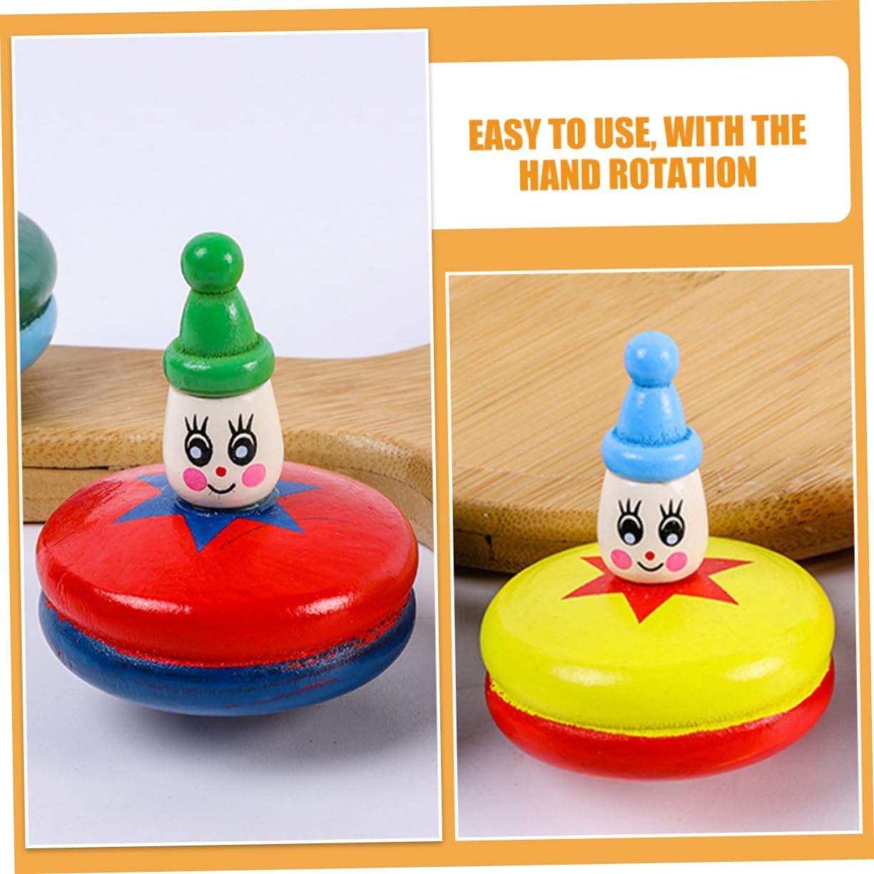 Giocattoli di legno: combina intrattenimento ed esercizio fisico nel complesso, promuovendo la capacità di coordinazione occhio-mano. Giocattolo giroscopico: facile da usare, con la rotazione della mano, può coltivare l'abilità pratica degli adolescenti. Giocattoli con cima in legno: il giocattolo giroscopico può essere una buona scelta per i tuoi amici o familiari, a loro piacerà molto. Giocattolo giroscopico in legno: è realizzato in materiale di legno stabile e solido, è sicuro e da usare. Giocattolo giroscopico rotante: il design simpatico e interessante del cartone animato della superiore in legno cattura l'attenzione dei bambini e stimola la loro immaginazione.