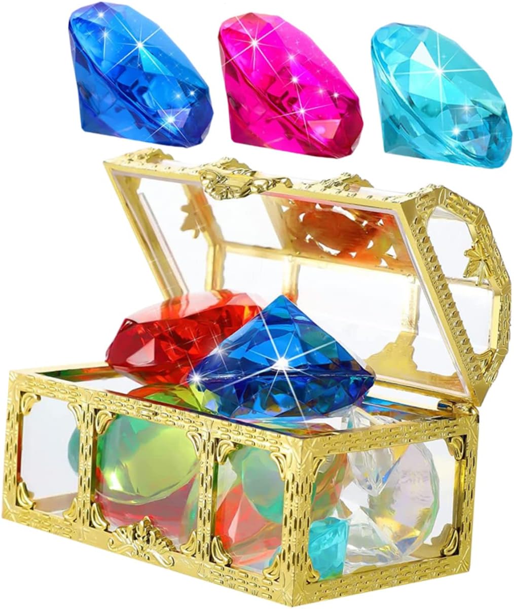 Giochi da piscina con scrigno del -- 🏊♀️🏖️⛱️🌊il non sbiadisce ed è molto bello in piscina, il materiale può servirti a lungo. un gioco creativo per immersioni in piscina, voi bambini potete usare questi giocattoli con gemme per creare molti tipi di giochi acquatici . Decorazioni per feste in piscina: il set di gemme per immersioni è adatto alle esigenze dei bambini di tutte le età, i giochi in piscina incoraggiano i bambini a immergersi, i bambini possono giocare a tuffarsi. Diamante per immersioni in piscina: questo set di giocattoli per immersioni con gemme è molto resistente e non facile da rompere. darti più divertimento da giocare. Giocattoli oceanici-- 🏊♀️🏖️⛱️🌊 il kit gemme e scatola del è un supporto fotografico che può sostituire l'oggetto reale quando scattano foto. fatto di, con una buona sensazione tatto. educazione precoce dei bambini, o per la decorazione del parco divertimenti per bambini o qualsiasi altro luogo che desideri decorare. Giocattoli con pietre preziose per piscina di compleanno: con scrigno del , questi giocattoli con gemme per immersioni in piscina possono ben decorare la piscina o la vasca da bagno, un divertente giocattolo per bambini quando nuota o fa la doccia.
