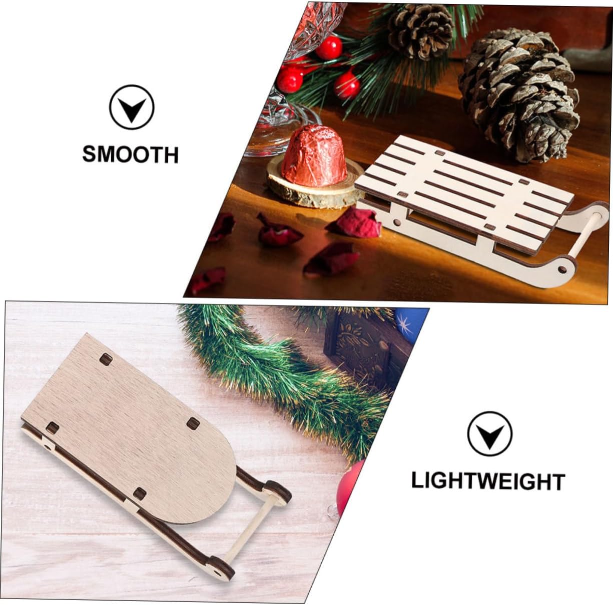 Slitta di legno non finita: condividi l'ornamento della slitta di natale con i tuoi amici, e a loro piaceranno queste cose affascinanti, sentiranno il tuo amore, slitta di legno non finita. Slitta in legno in miniatura: la miniatura ornamentale da slitta natalizia aumenterà anche l'atmosfera festosa, modello a slitta. Decorazione con slitta in legno: questa decorazione con slitta in legno può essere utilizzata per decorare la tavola o appesa all'albero di natale come decorazione sospesa, ornamenti artigianali natalizi. Ornamento a slitta: il design creativo della slitta aggiungerà un'atmosfera più festosa e piacevole alla festa di natale, può essere ampiamente utilizzato per feste, ornamenti a slitta di natale. Mini decorazione artigianale in legno: la lavorazione squisita lo rende adatto a un uso a lungo termine e può essere appeso stabilmente a un albero di natale o a una slitta di legno.