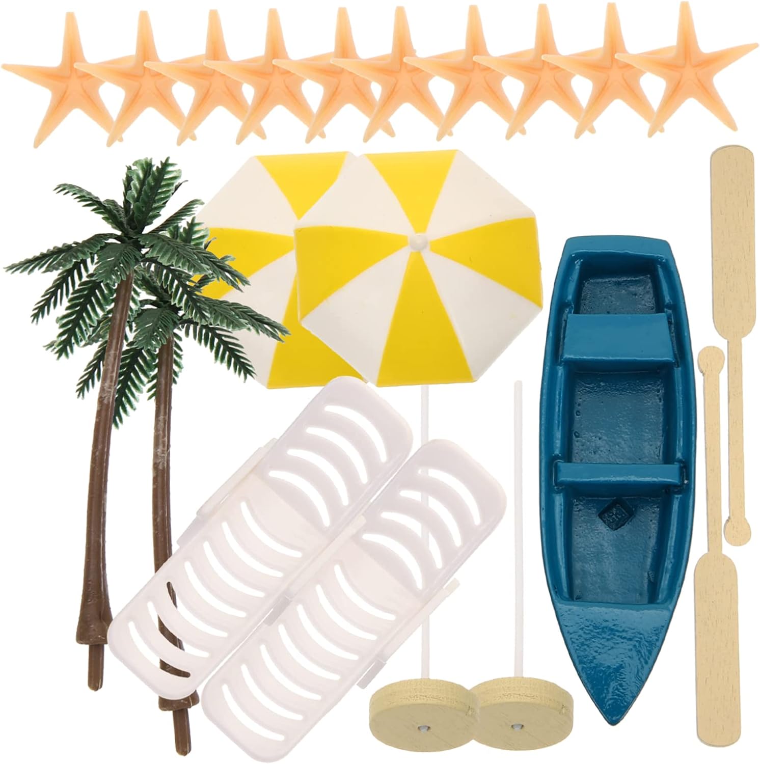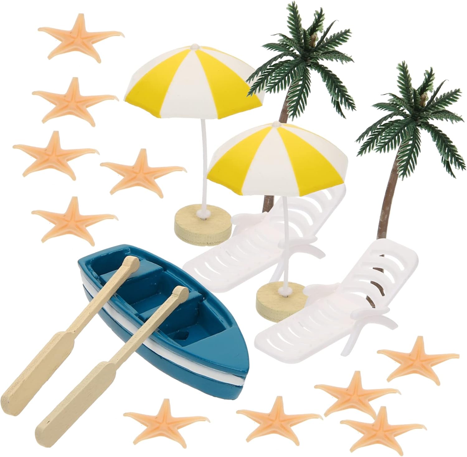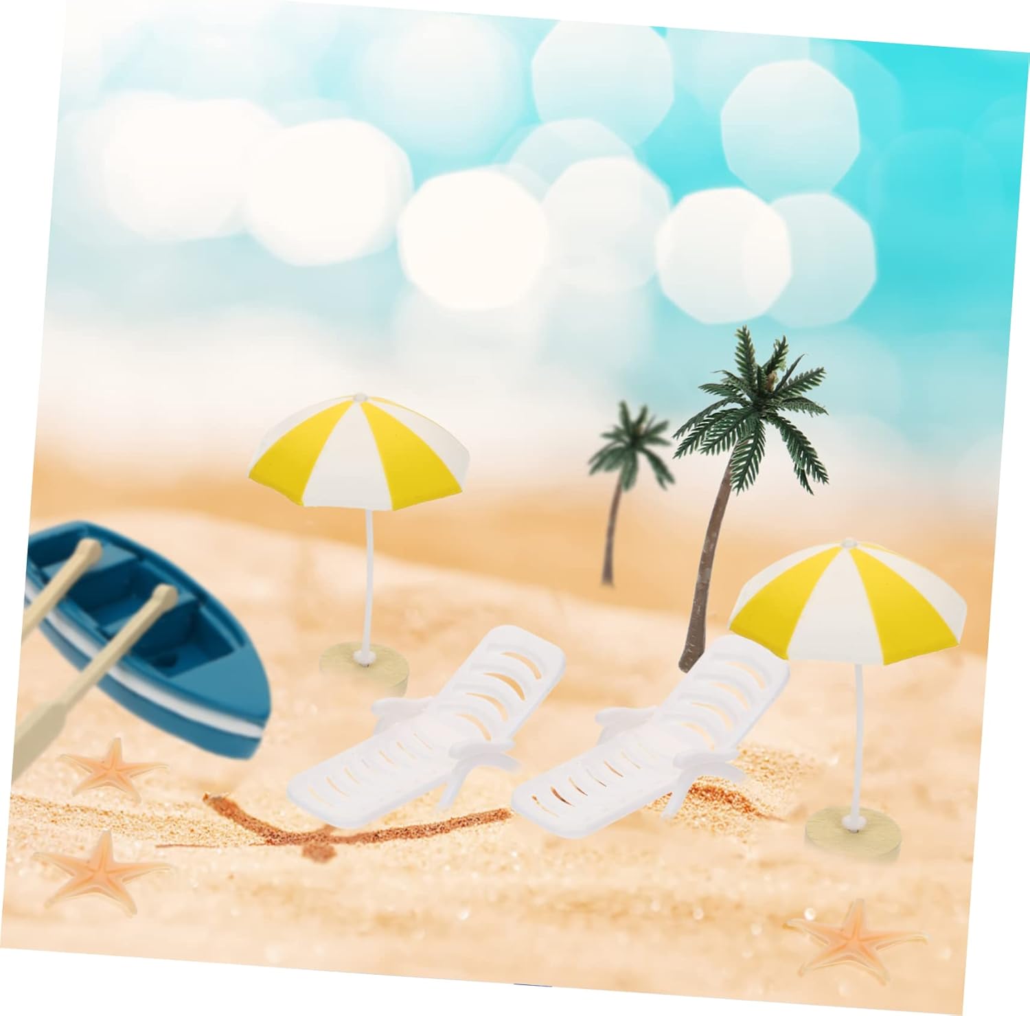 Sedia giapponese: una combinazione di sedia a sdraio, palma da spiaggia, barca da spiaggia, ombrellone e altro, decorazioni in stile oceano. Accessori da spiaggia: realizzati con materiali di , non facili da rompere o deformare, possono mantenere un bell'aspetto per lungo tempo, toppers cupcake con . Giocattoli in miniatura: accessorio per la decorazione di micro fotografie di paesaggi, ti aiuta a scattare tante bellissime foto, mini vasi per fioriere. Piccola piscina: un compleanno, natale, capodanno e qualsiasi occasione speciale, decorazione in miniatura. Mini bambole: questi mini accessori da spiaggia sono accessori decorativi per aggiungere più divertimento alla tua casa in miniatura, mini palma.