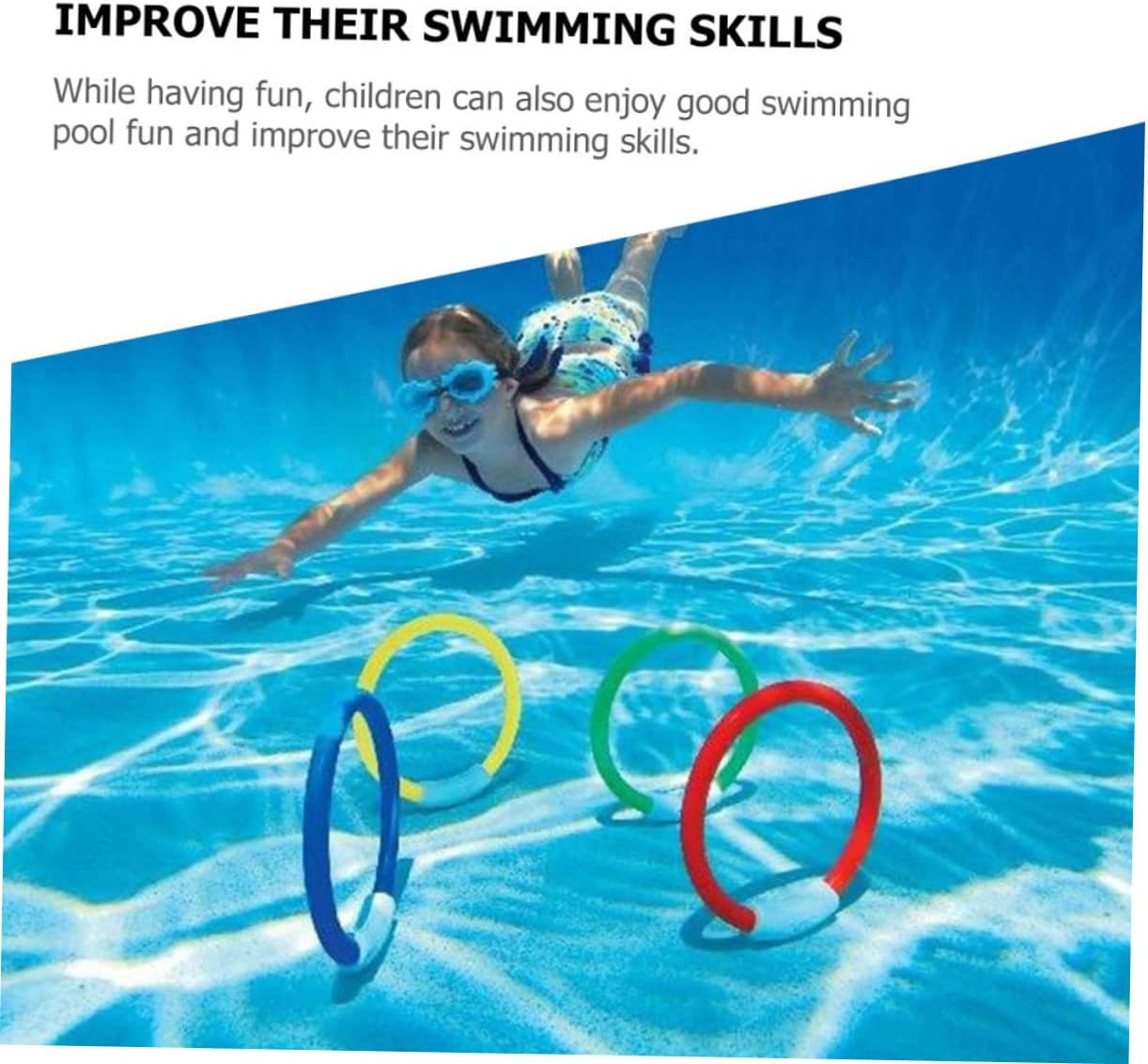 Giocattoli da esterno per bambini: realizzati in materiale plastico, senza sbavature, non danneggeranno la pelle dei tuoi bambini, fornitura per bambini. Giocattoli estivi all'esterno: il design colorato è più attraente per i bambini e porta più divertimento, in modo che possano nuotare felici, anelli da immersione. Accessorio per bambini: compatto e raffinato, comodo da riporre, pratico da usare, giocattolo da esterno. Giocattoli ad anello: questo giocattolo da sub è sicuro, quindi puoi usarlo con sicurezza, interessanti giocattoli da sub. Giocattoli da immersione: di pregevole fattura, non facili da indossare, molto pratici da usare, divertenti giocattoli da immersione.