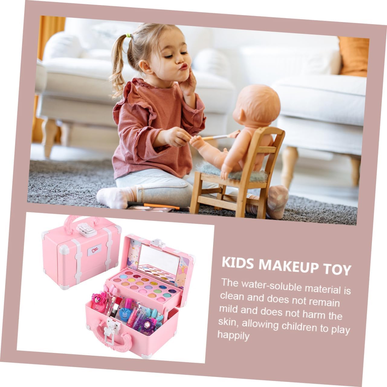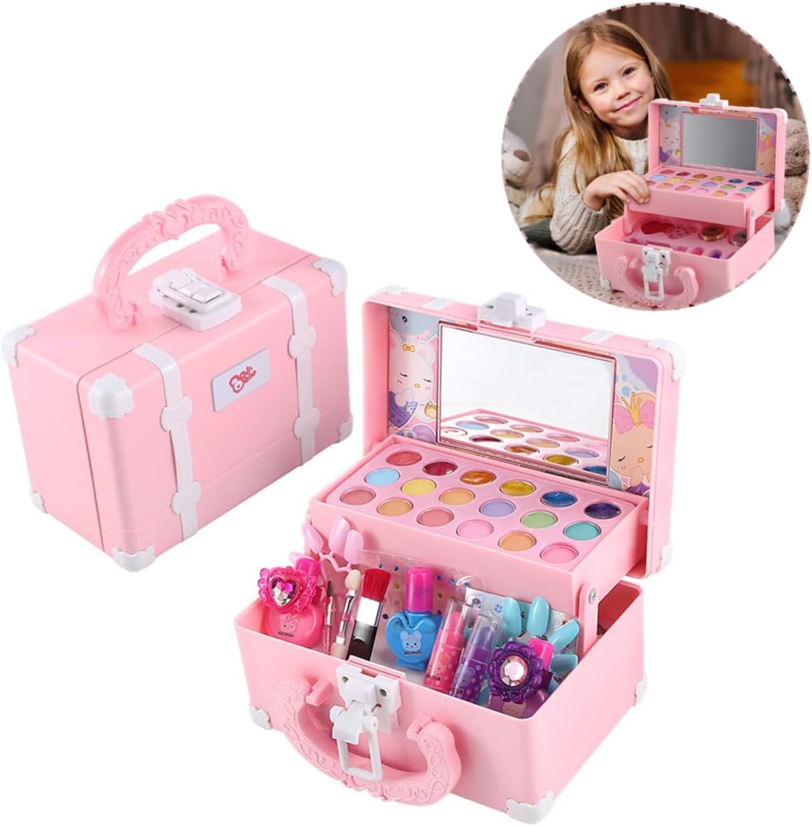 Giocattolo per il trucco simulato: l'uso degli addominali come materiale, alto livello di sicurezza, il bambino può rilassarsi per giocare, sensazione delicata e buon grado, giocattolo educativo domestico. Set da gioco per bambini: design simulato, che stimolerà l'interesse dei bambini per il e le forme, giocattolo cosmetico per bambini. Giocattoli educativi per bambini: questo giocattolo per il trucco è realizzato in materiale abs, che è sicuro per far giocare i bambini, kit per il trucco per ragazze. Giocattolo da trucco per bambini: come decorazione da scrivania, può dare tuo tavolo un look, inoltre, un meraviglioso giocattolo per il trucco simulato per la figlia. Kit trucco per bambini: questo set cosmetico è sicuro e solubile in acqua, fornisce ai bambini giocattoli per giochi creativi, oggetti di scena per il trucco.