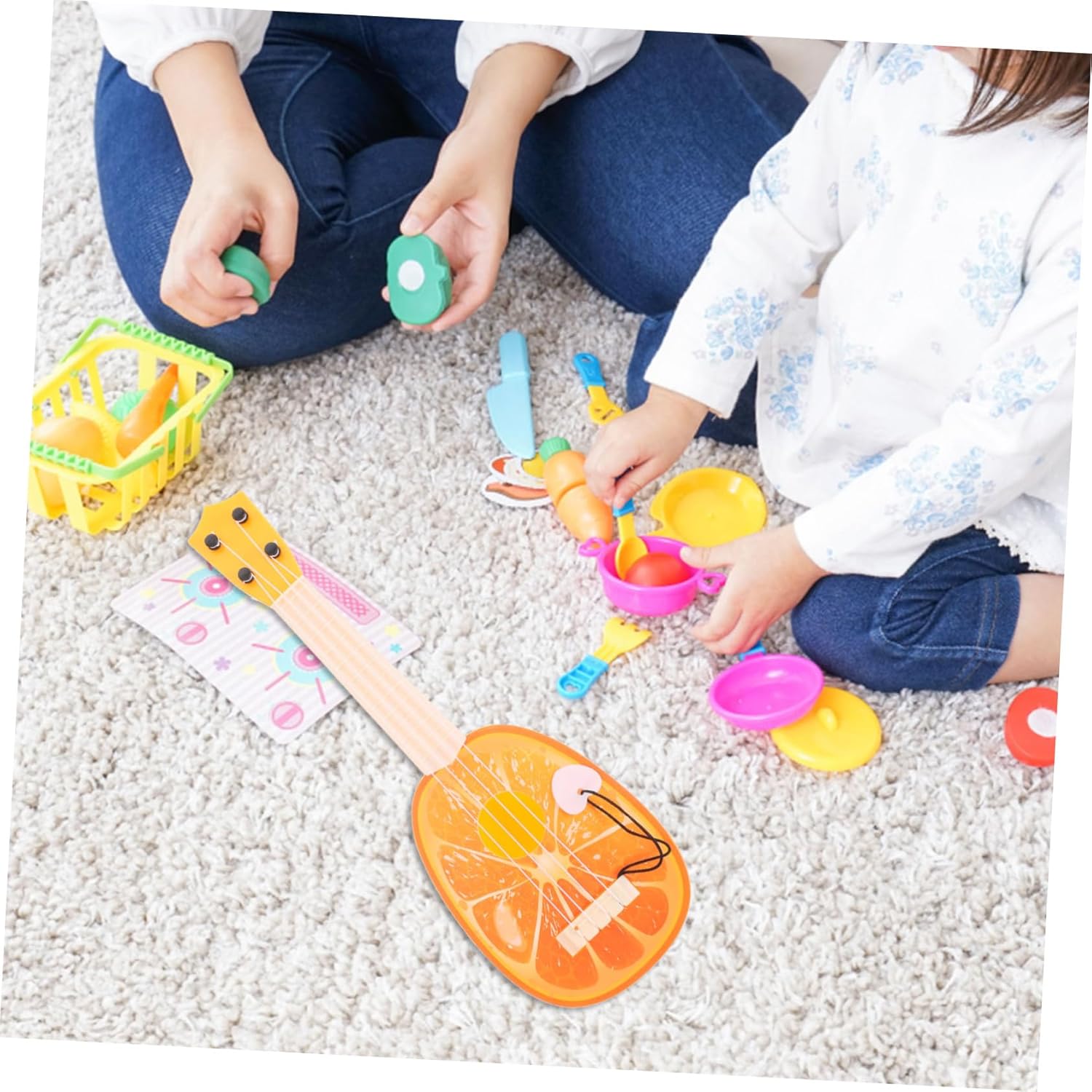 Piccola chitarra: compatta e leggera, perfetta per i viaggi e le attività all'aperto, ti offre maggiore praticità nel trasporto, mini chitarra giocattolo Mini chitarra artificiale: dimensioni ridotte, facile da trasportare e suonare sempre e ovunque, design realistico, aspetto squisito, alto grado di simulazione, mini chitarra di plastica Mini giocattolo ukulele: portatile e comodo, porta questa chitarra di simulazione con te ovunque tu vada, pregevole fattura, costruita per durare, mini oggetti di scena per chitarra Mini strumento musicale giocattolo: la chitarra a tema frutta simulata è realizzata in plastica, questo materiale robusto è sicuro e facile da usare, mini giocattoli per chitarra Mini chitarra - comprendere la cognizione dello strumento musicale, illuminazione, comprendere la struttura dello strumento musicale, mini giocattolo ukulele